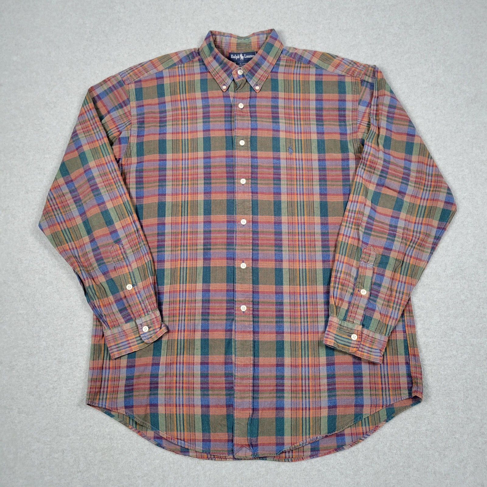 VTG Polo Ralph Lauren Shirt Men Large Blaire Plaid Pony Oxford Colorful Office