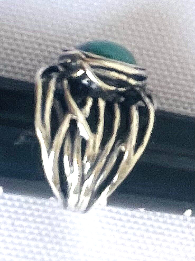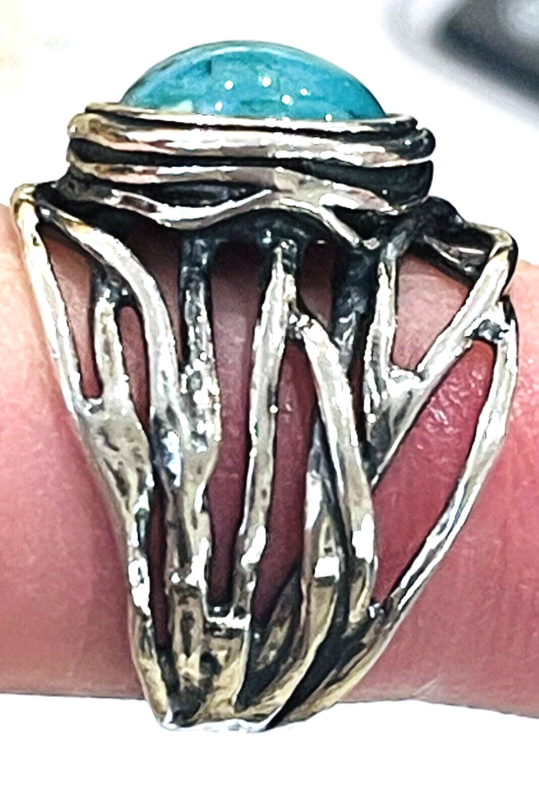 Sterling Silver 925 Open Work Vein Turquoise Ring Bezel Setting Marked Israel