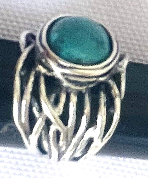 как выглядит Sterling Silver 925 Open Work Vein Turquoise Ring Bezel Setting Marked Israel фото