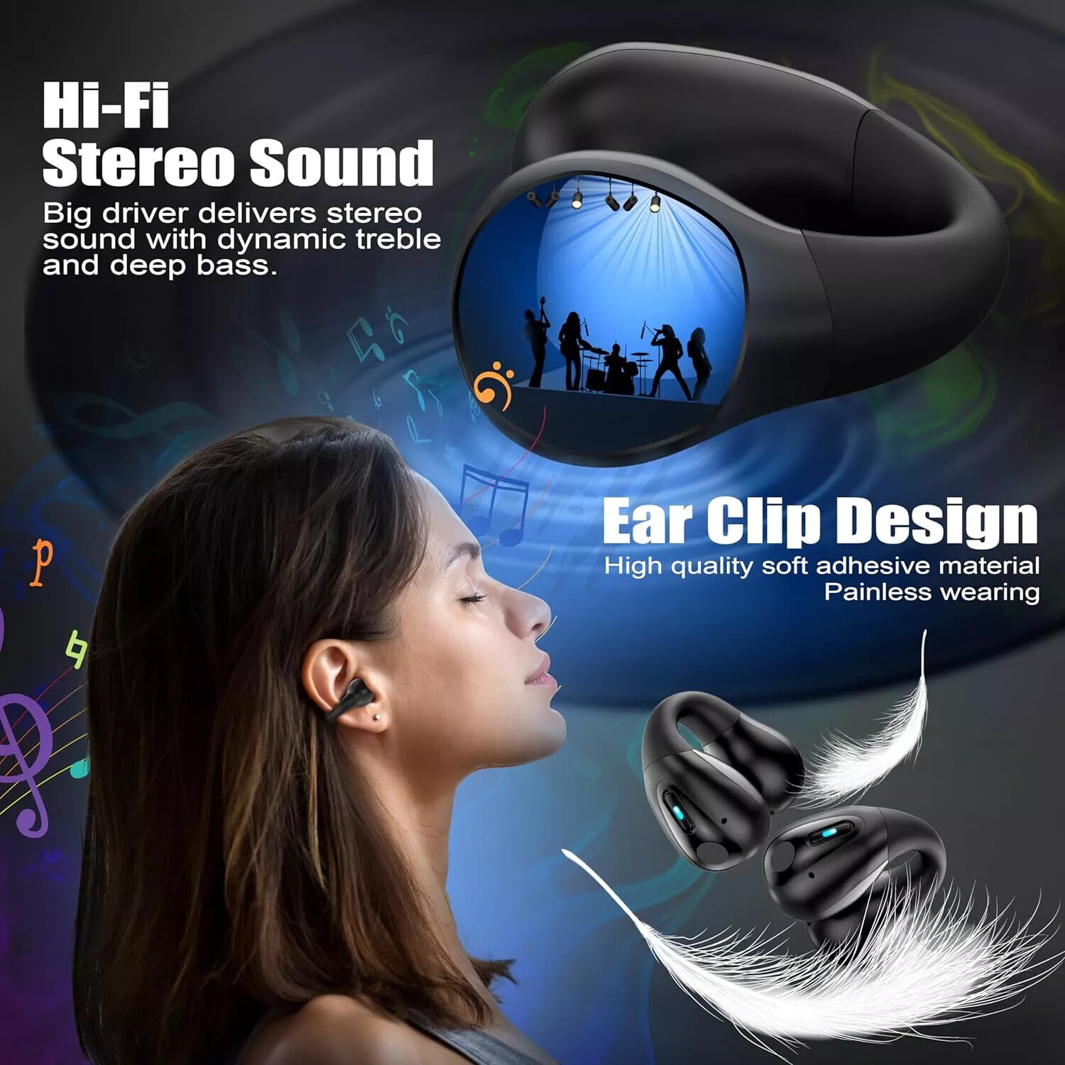 Bluetooth 5.3 Wireless Earbuds Ear Clip Bone Conduction Headphones Sport Headset