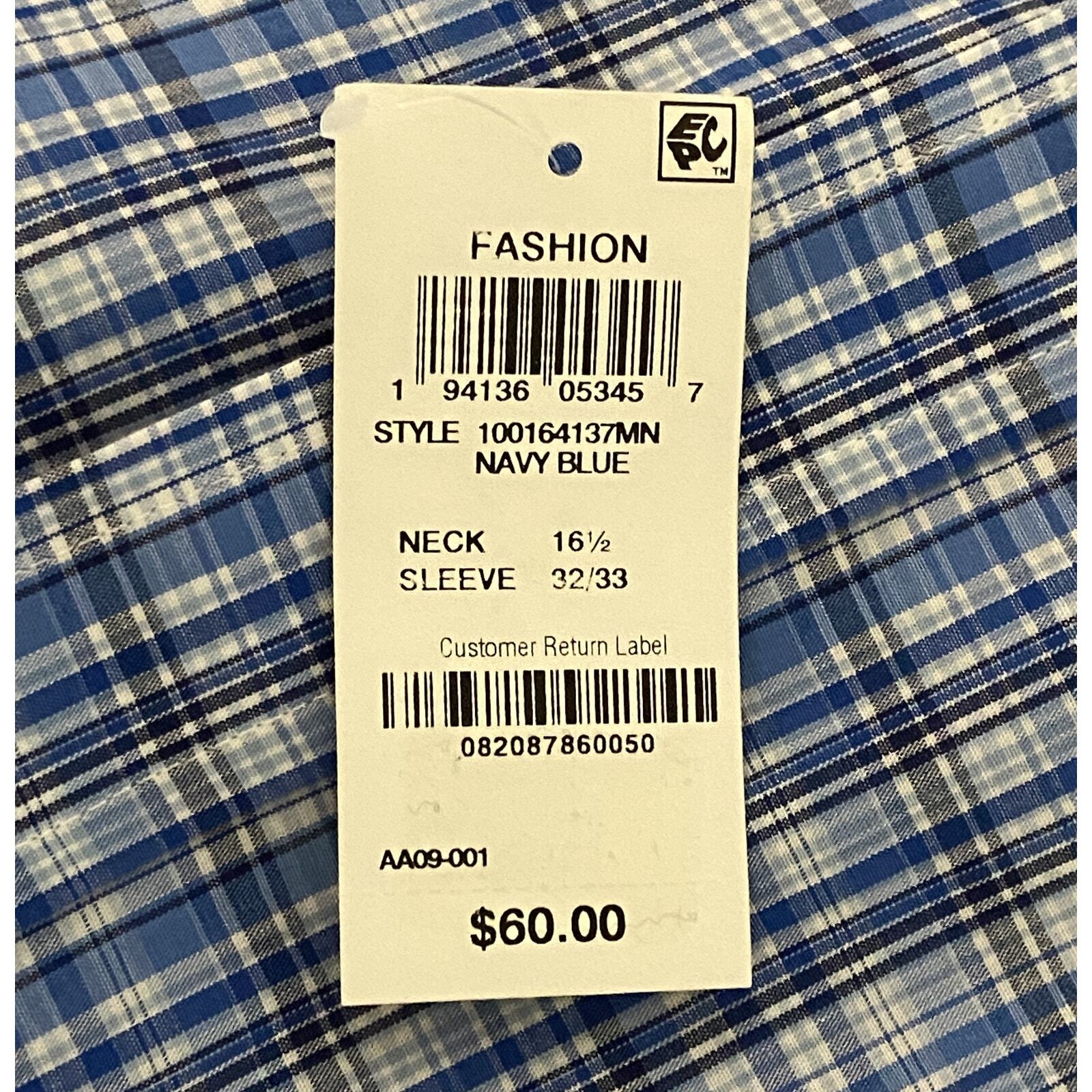 Club Room Performance Men's 16.5 23/33 Button Down Shirt Navy Blue Plaid NEW