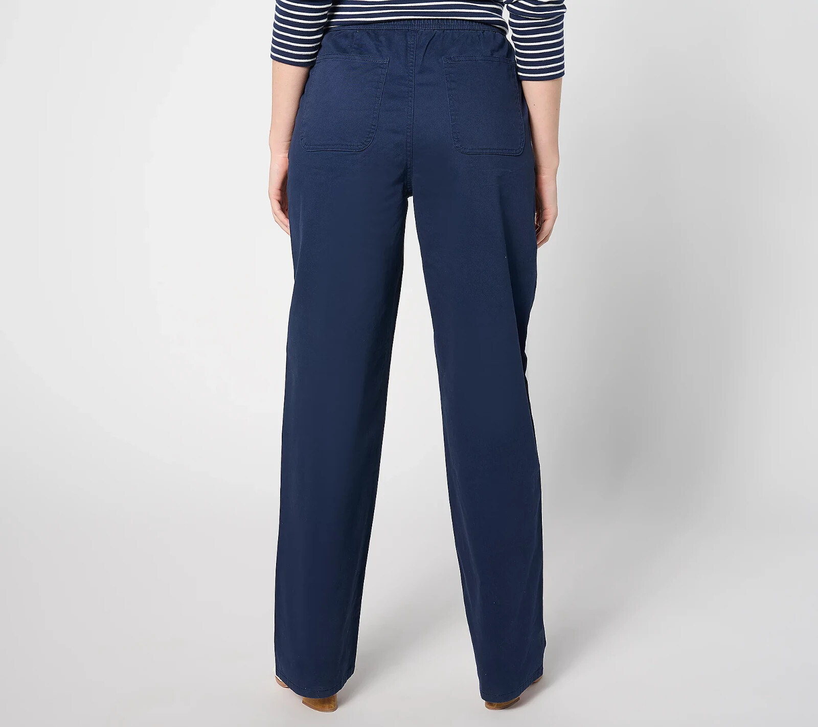 Denim Co. EasyWear Twill Full-Length Wide-Leg Pant-Navy-Large-NEW-A633304