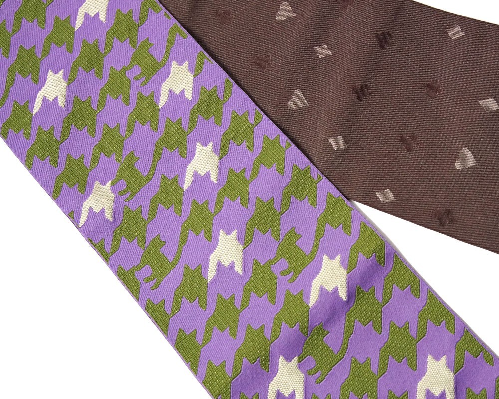 как выглядит Half-width Obi Houndstooth Cat Purple Check Womens Kimono Yukata фото