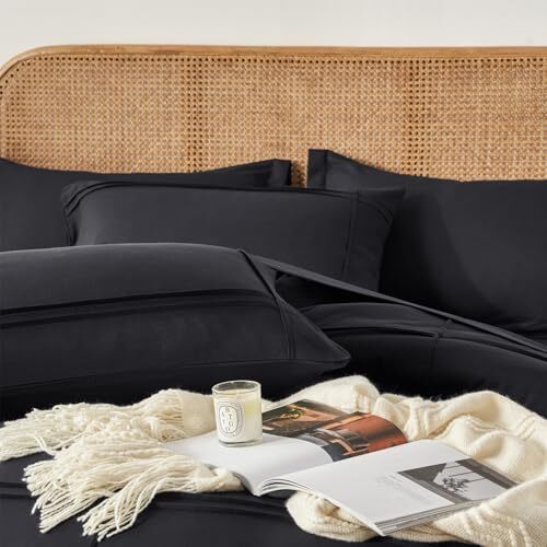 как выглядит Queen Comforter Set 7 Piece Bed in a Bag,Grid Pinch 7Piece-Queen 90X90" Black фото