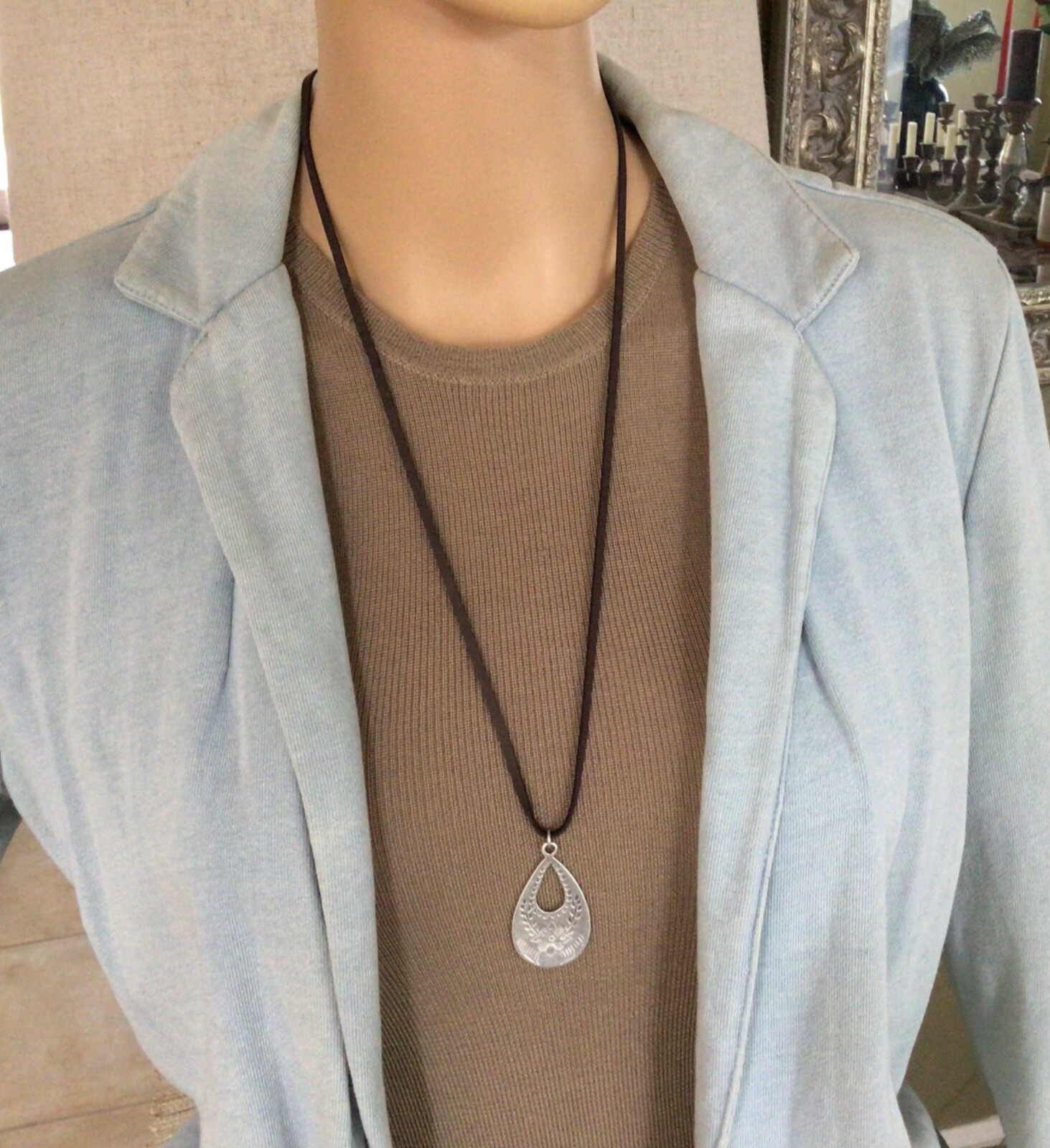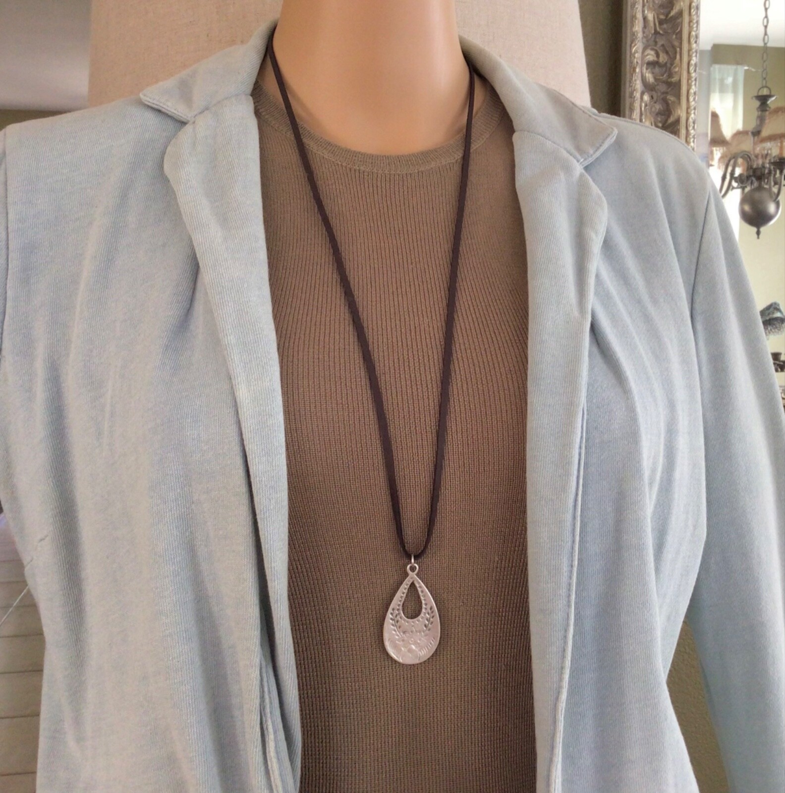 как выглядит NEW Sundance Charm Necklace leather brown cord handmade artisan jewelry фото