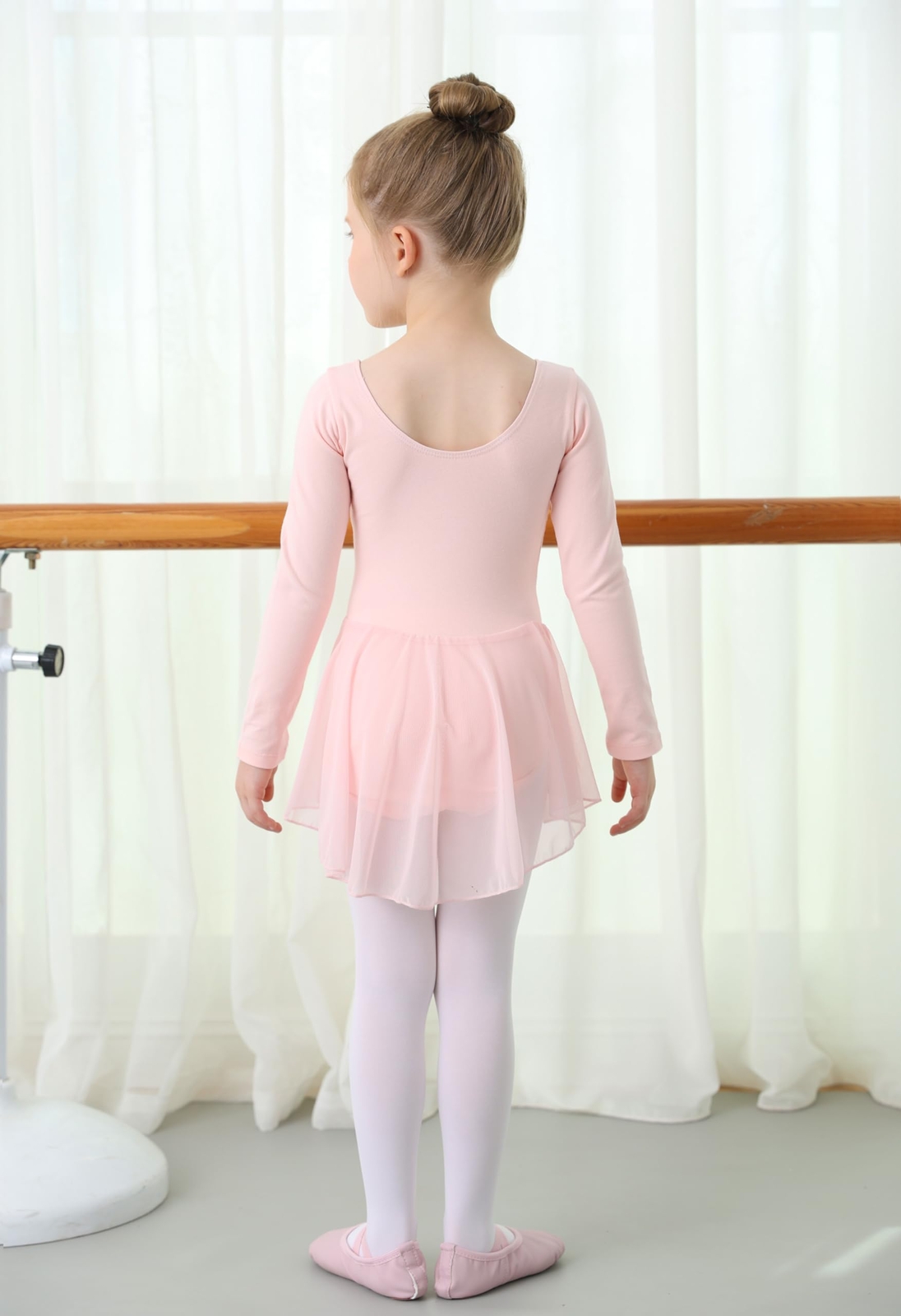 Pink Long Sleeve Ballet Leotards for Girls Toddler Dance Leotard with Skirt B...