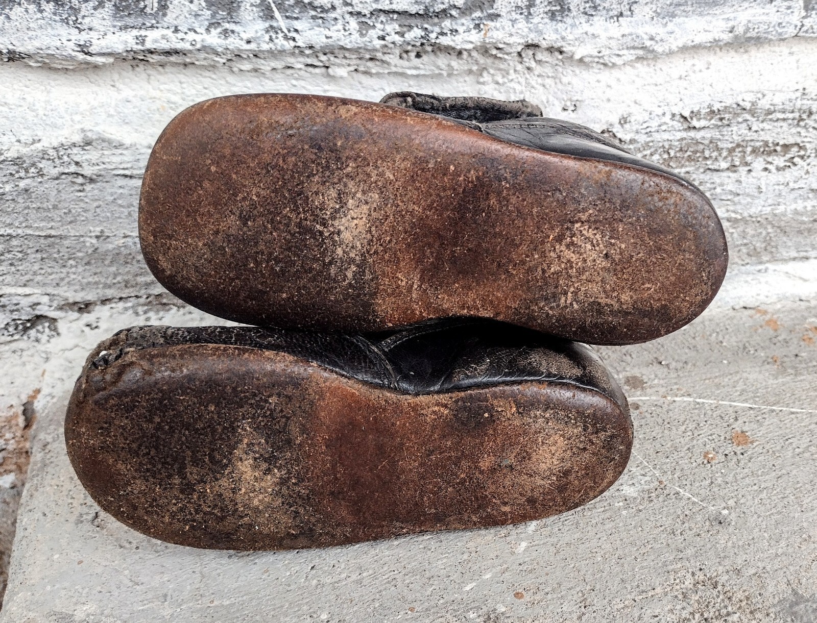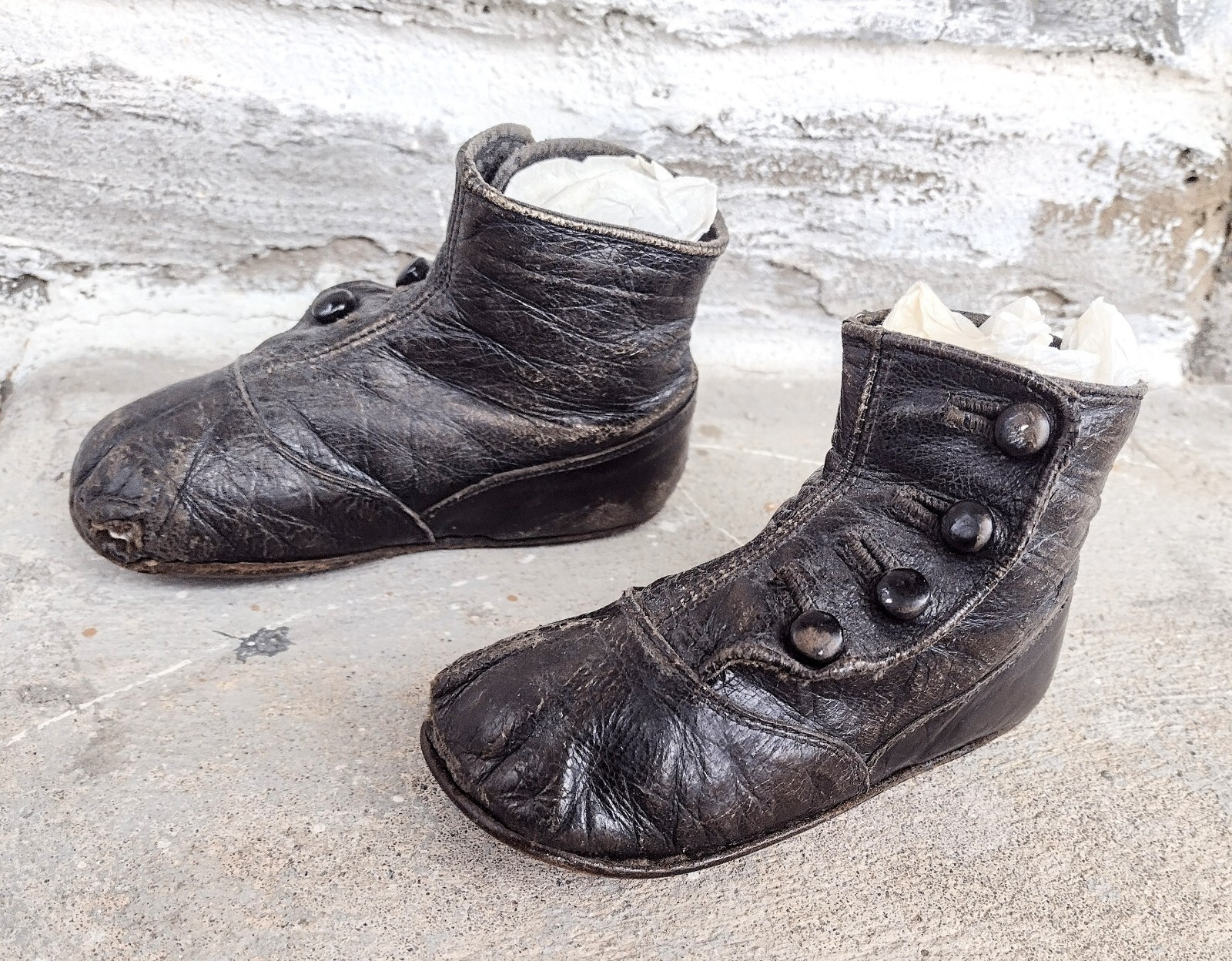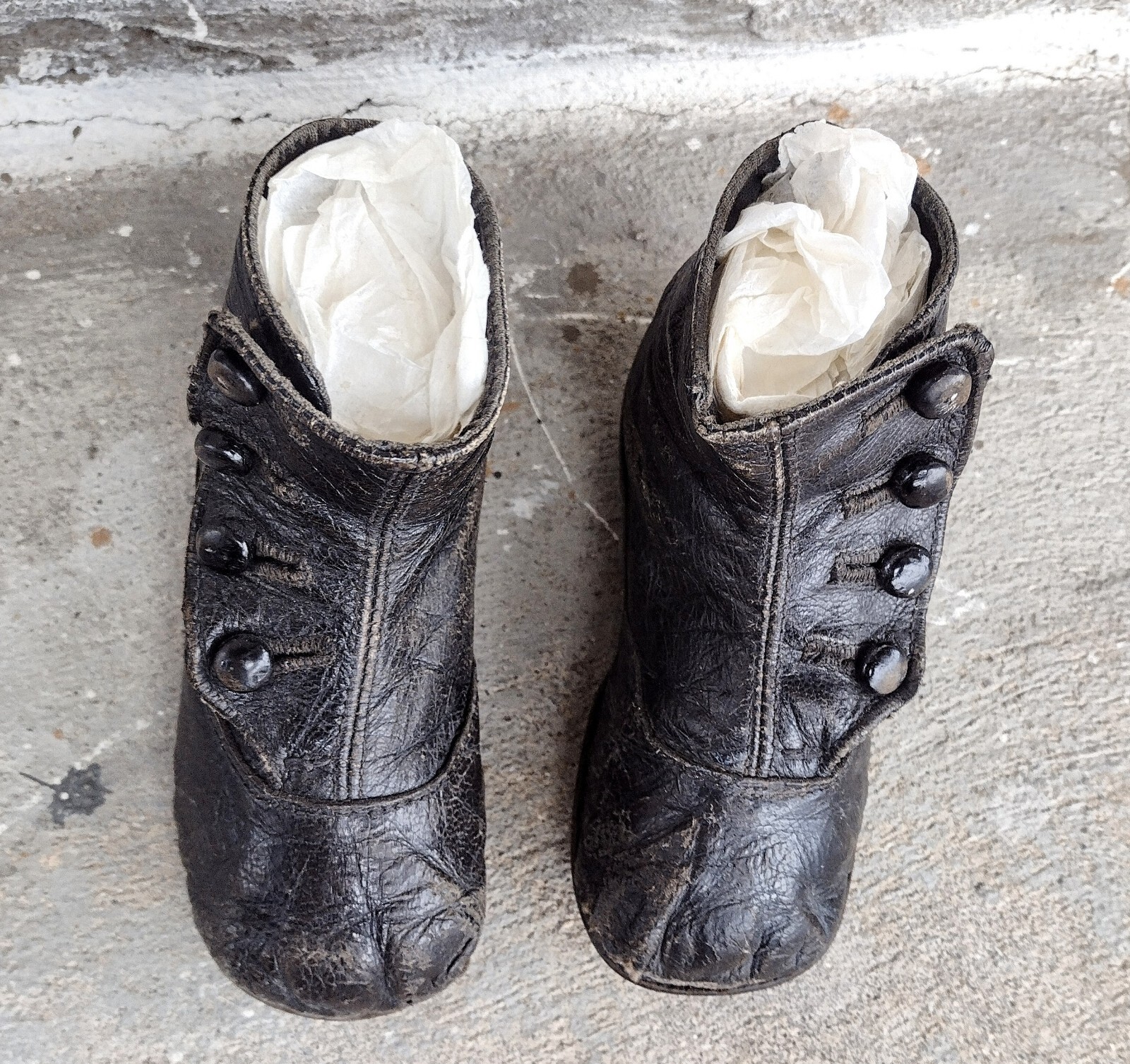 как выглядит Antique Victorian Leather High Top Button Up Black Baby Shoes фото