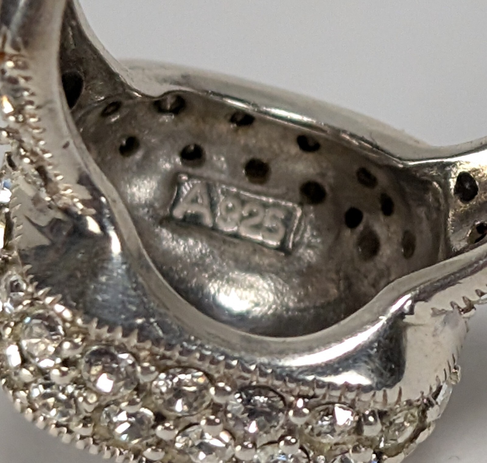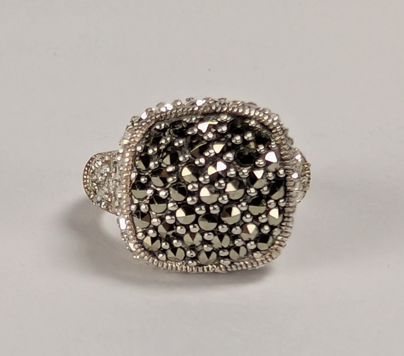как выглядит Sterling Silver Cubic Zirconia Marcasite Square Statement Ring Sz 6 фото