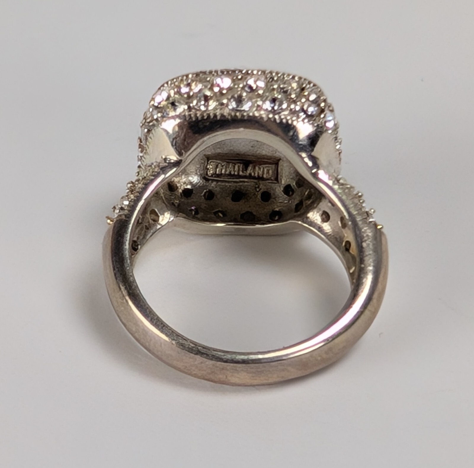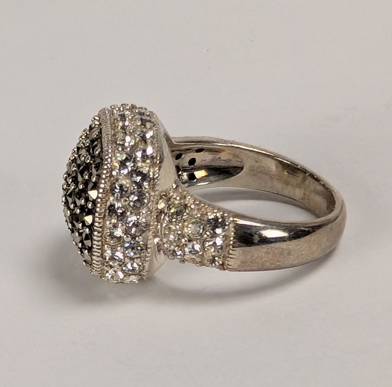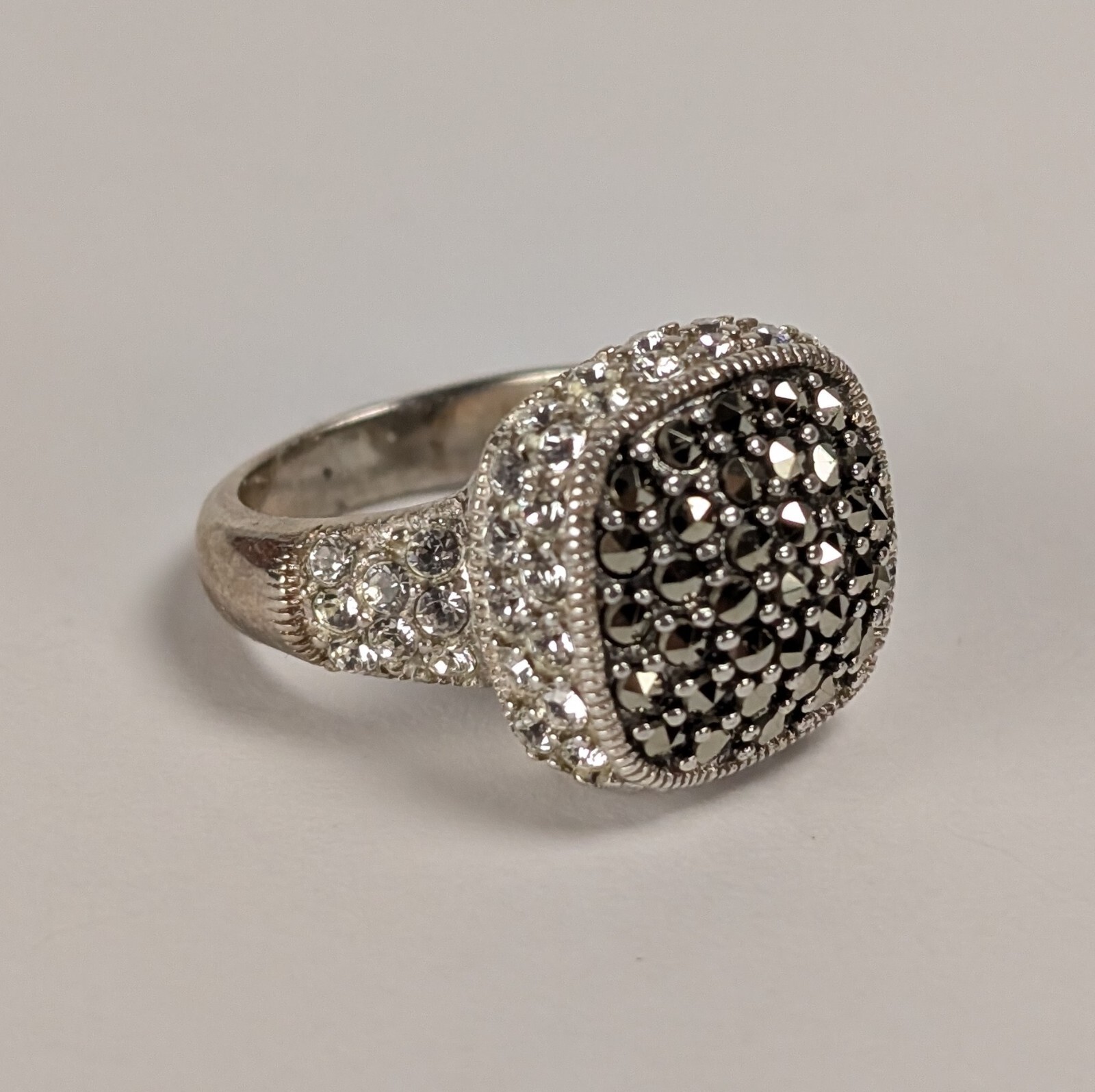 Sterling Silver Cubic Zirconia Marcasite Square Statement Ring Sz 6