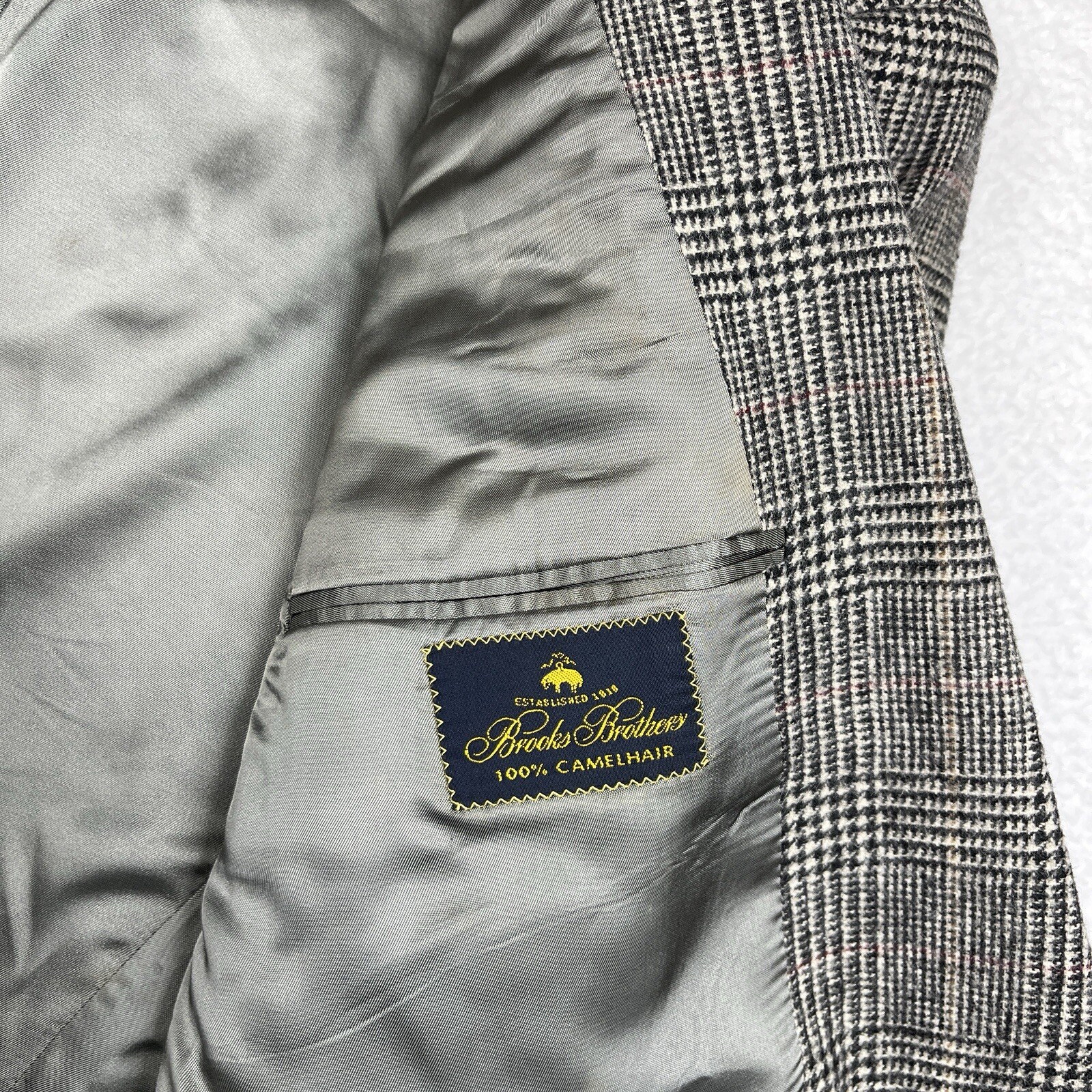 Vintage Brooks Brothers Blazer Mens 44 100 Camel Hair Glen Check USA