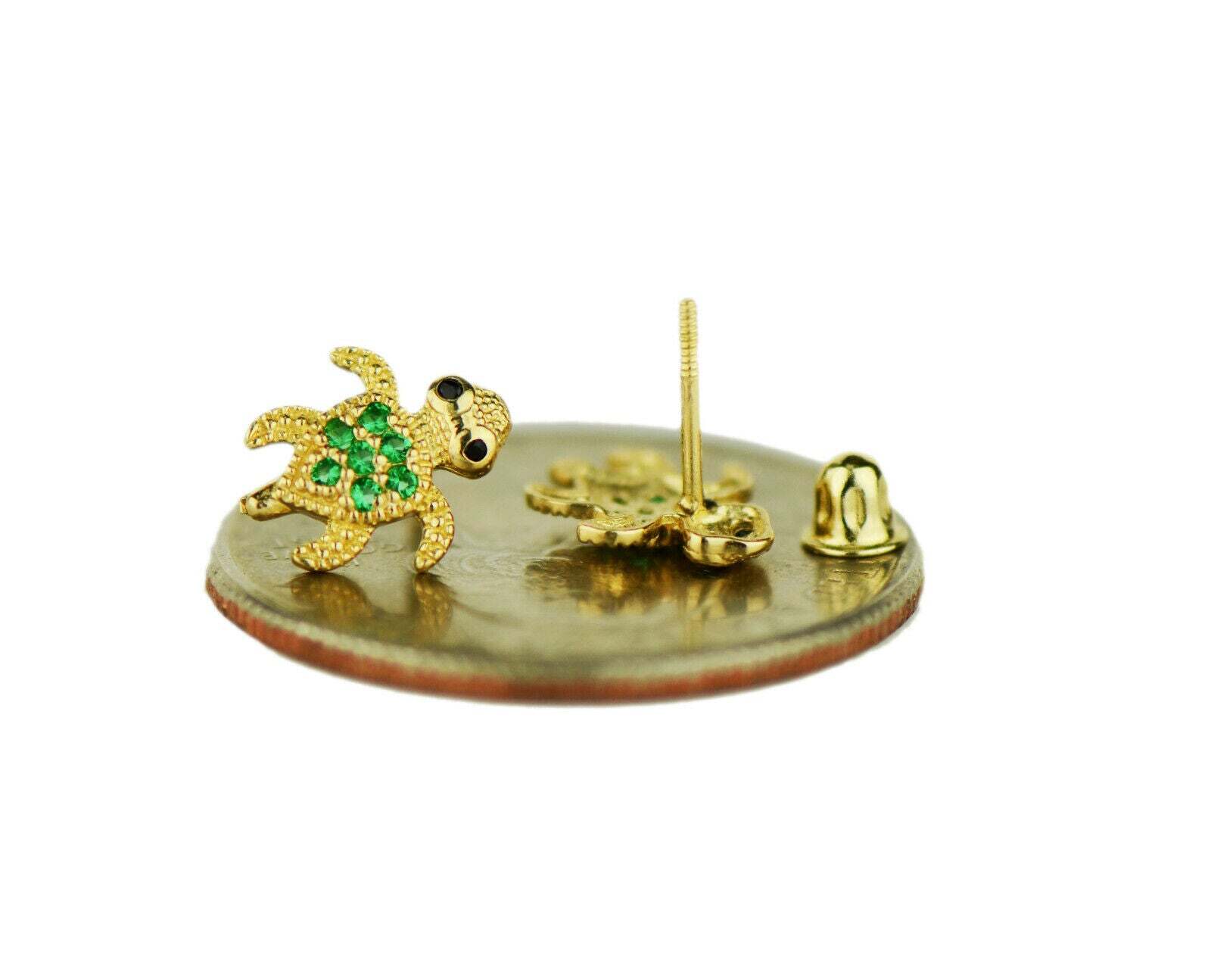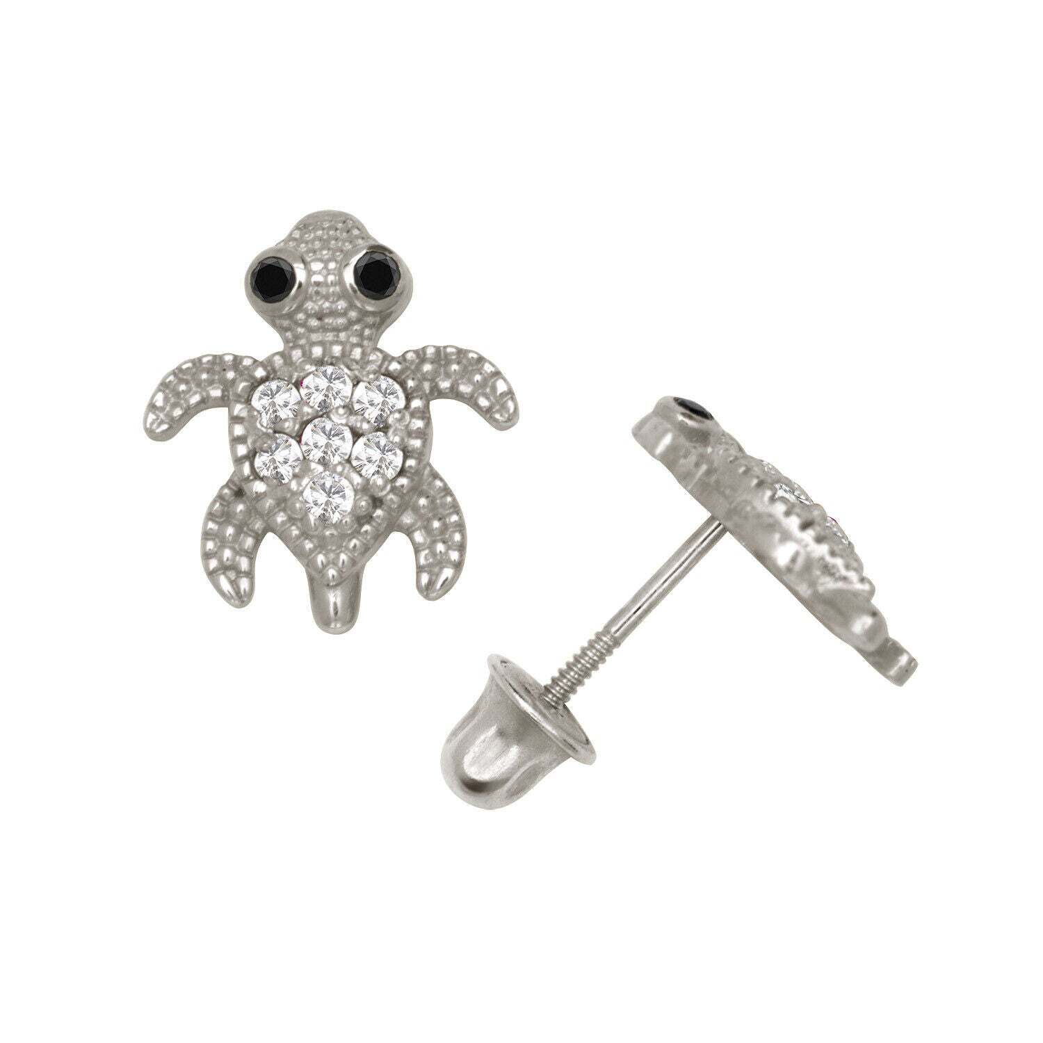 14k Yellow or White Gold Turtle CZ Stud Earrings