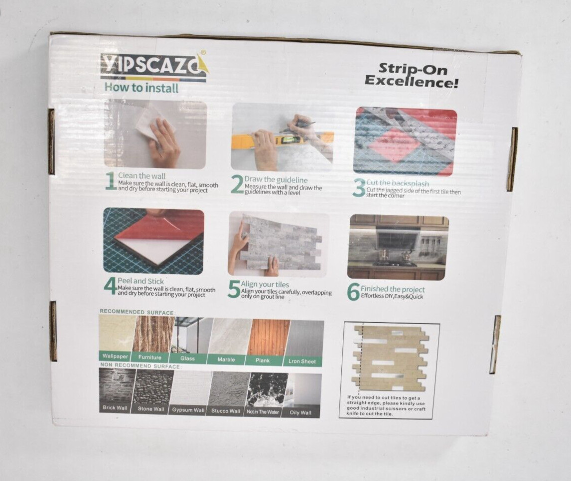 Yipscazo 10 Sheets Peel Stick Stone Metal Tile Backsplash 12x12 in Ecru Design