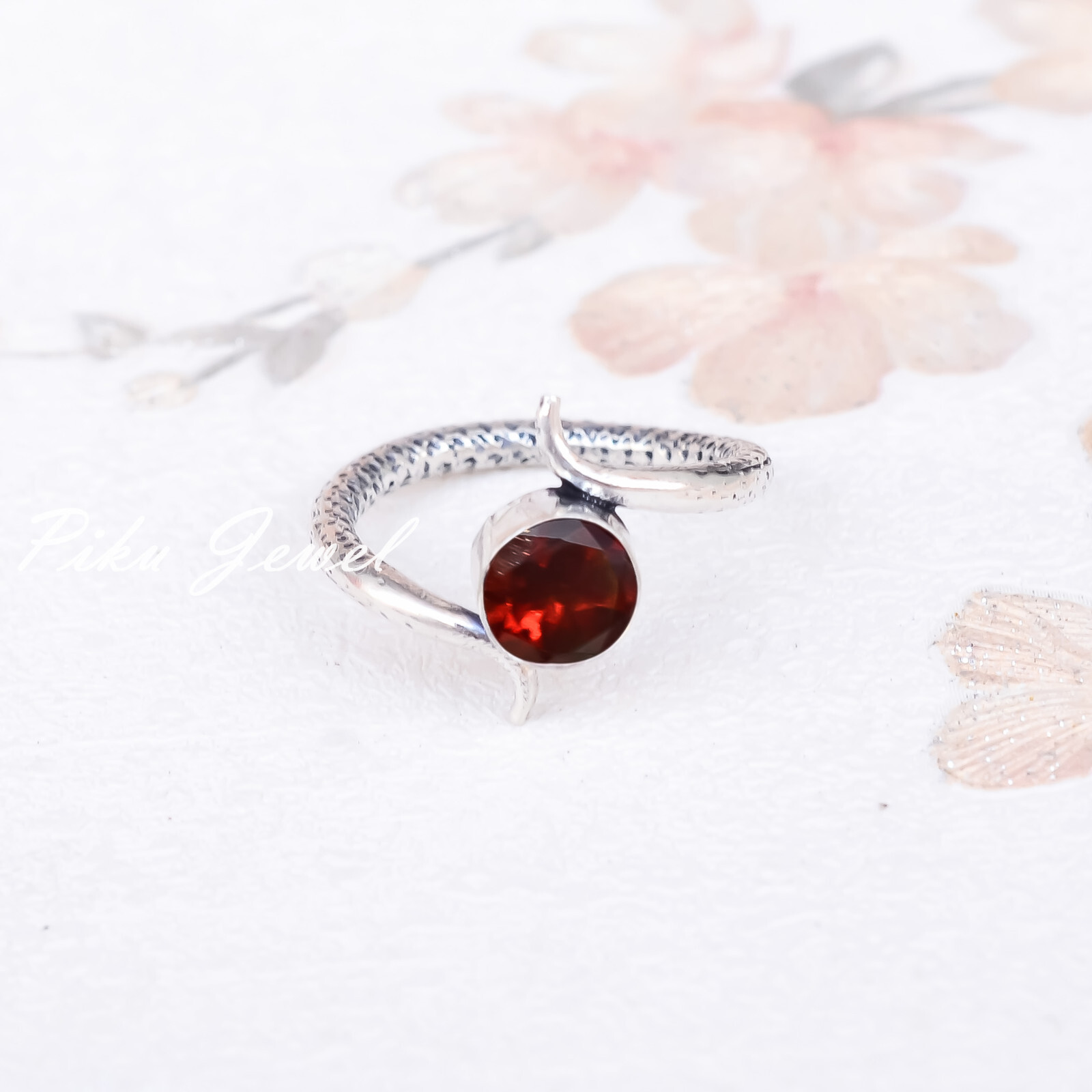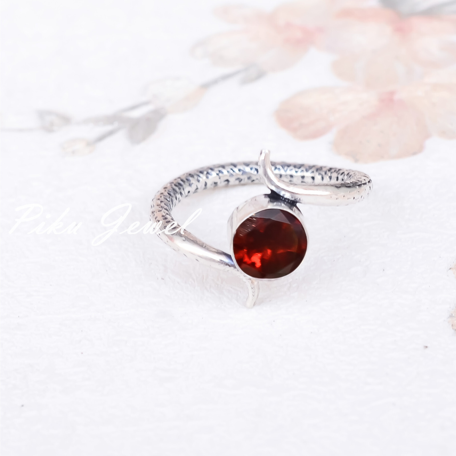 Red Garnet Cut Gemstone 925 Sterling Silver New Art Ring For Father Gift Jewelry