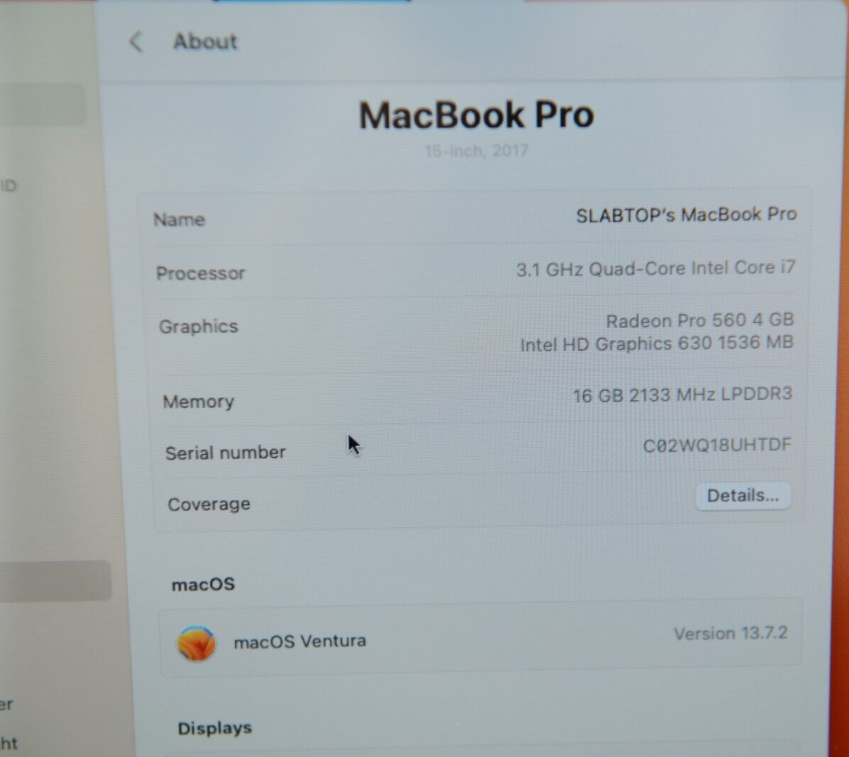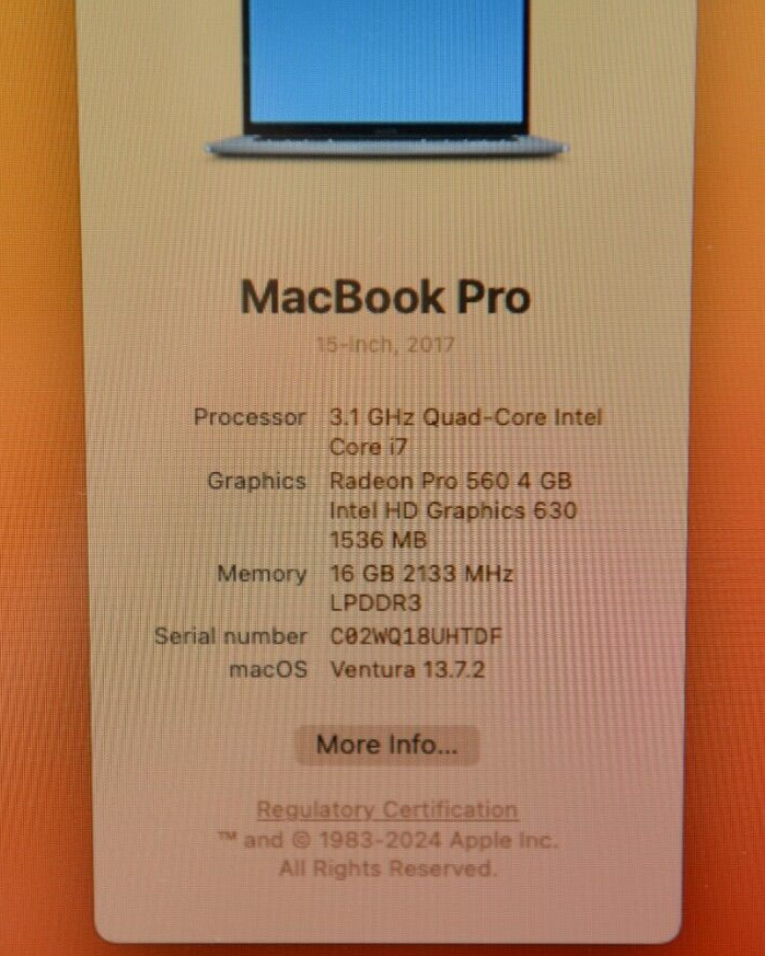 Apple MacBook Pro SLABTOP A1707 W/ 27 Apple Cinema Display Adapters