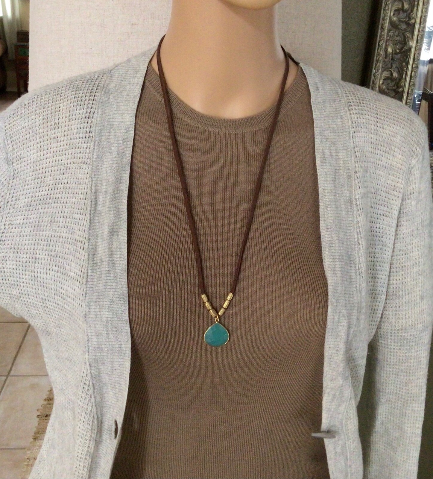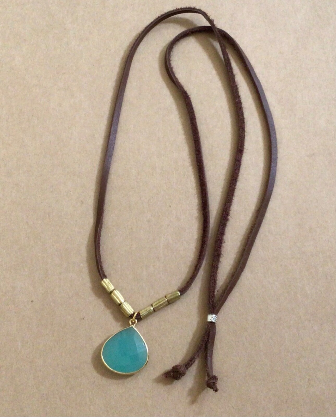 как выглядит NEW Sundance Charm Necklace leather brown cord Chalcedony handmade artisan фото