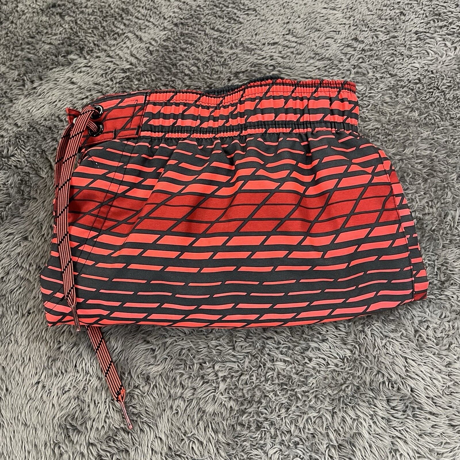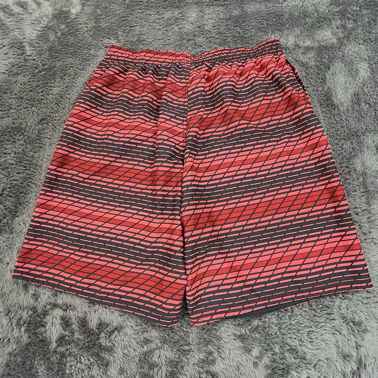 как выглядит Nike Swimming Trunks Shorts Red Black Striped Mesh Lined Elastic Waist фото