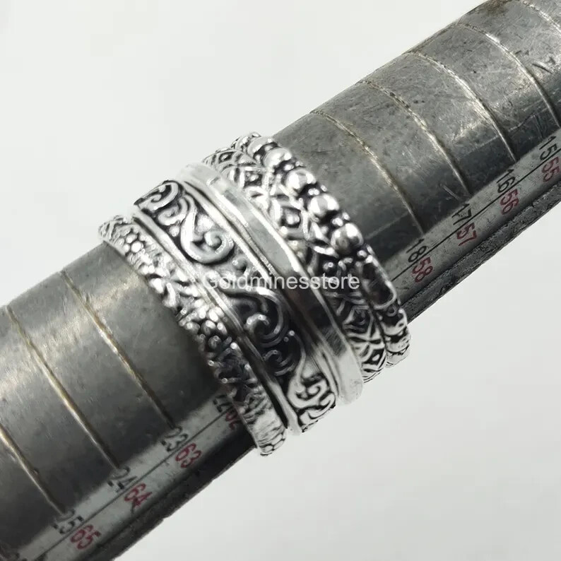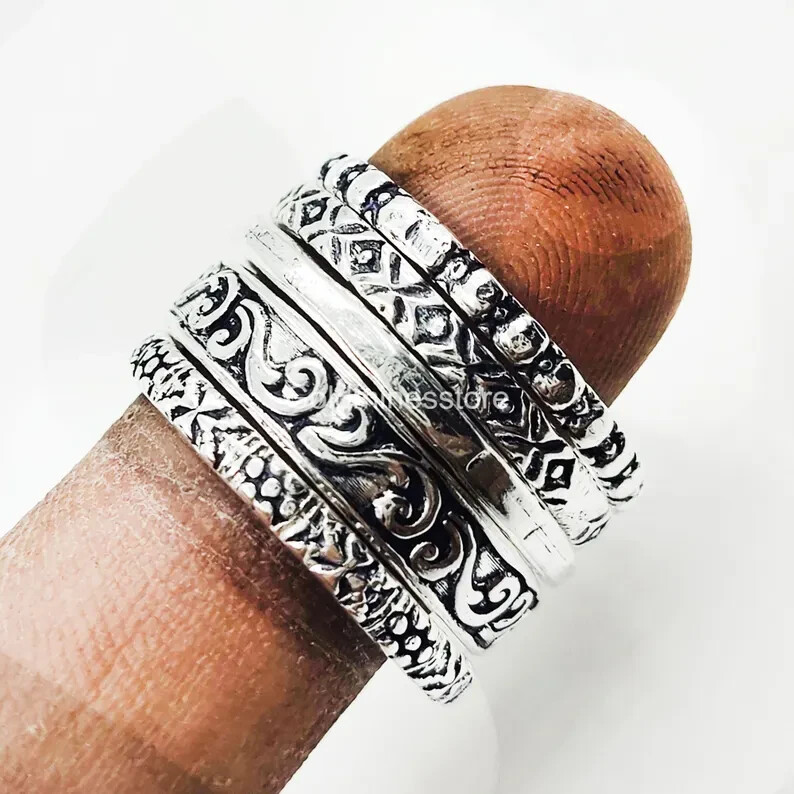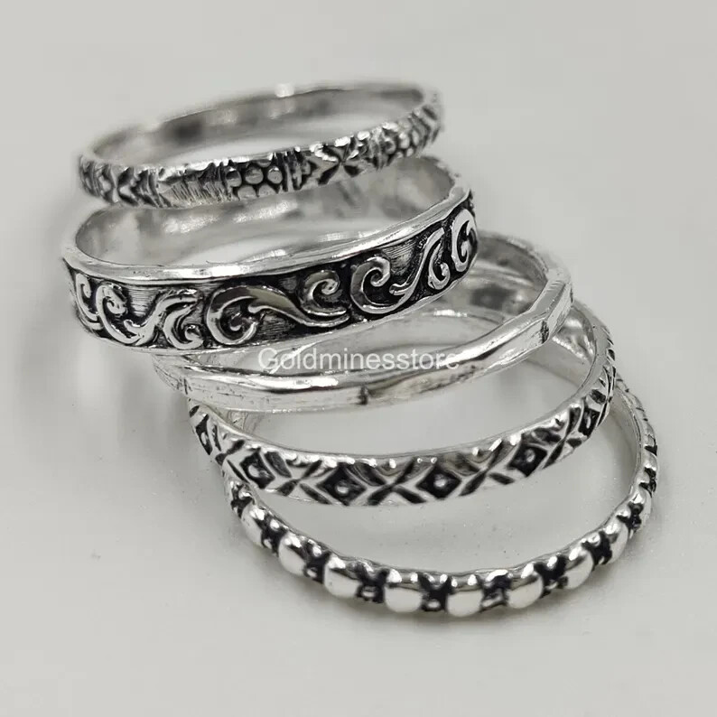 как выглядит Set Of 5 Sterling Silver Ring, Assorted Pattern Rings, Dotted Rings, All size фото