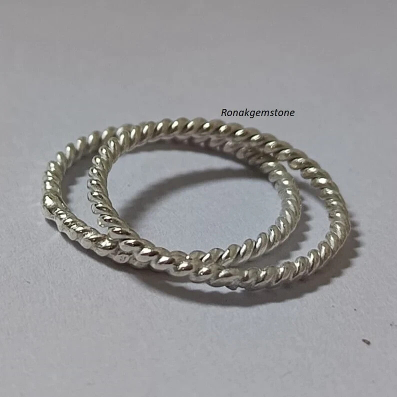 2 Pcs Sterling Silver Twisted Ring Rope Ring Braided Twist Band Stacki All size
