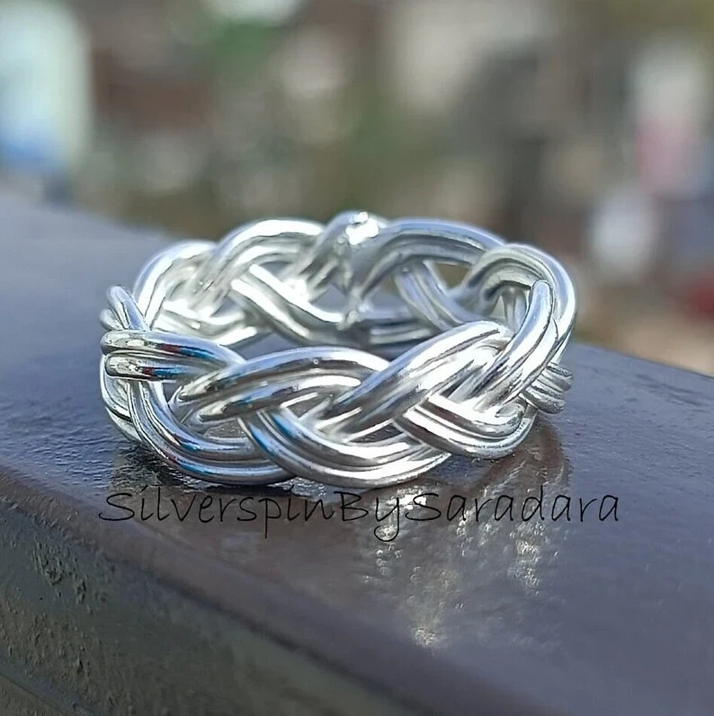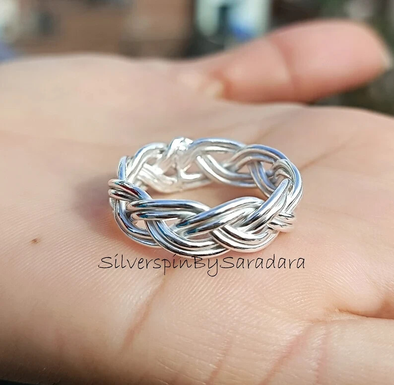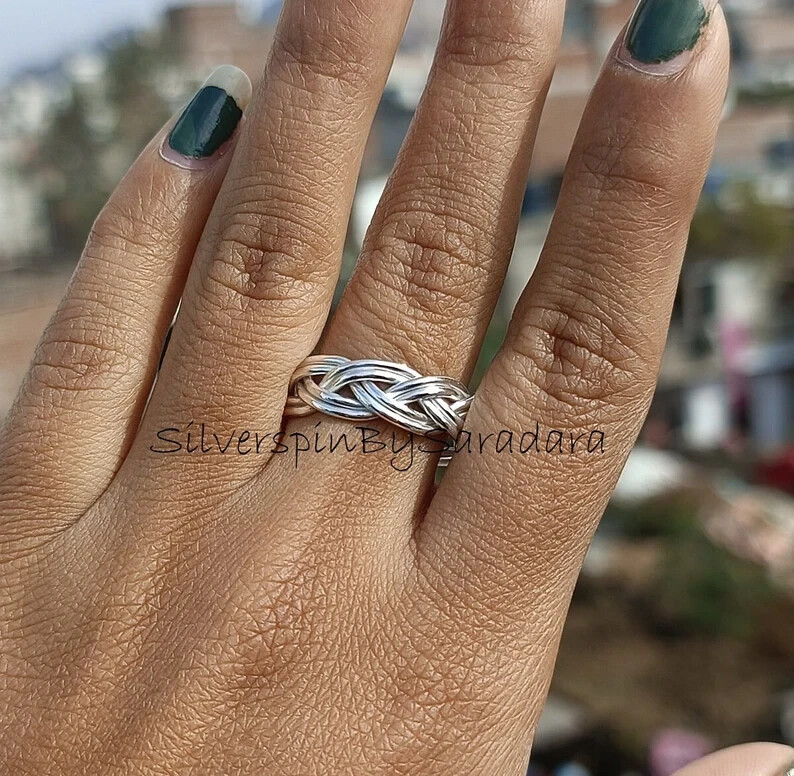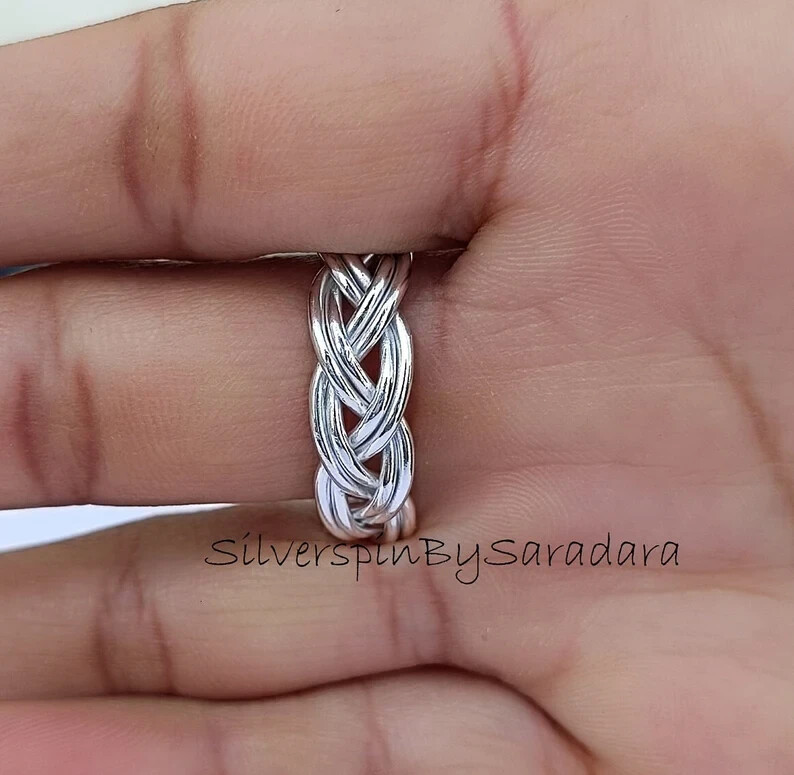 Braided Silver Ring, Braided Silver Band Ring, 925 Sterling Silver, Han All size