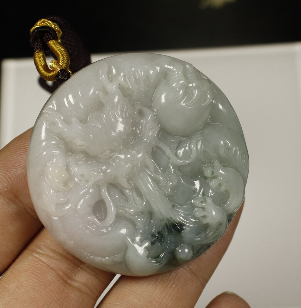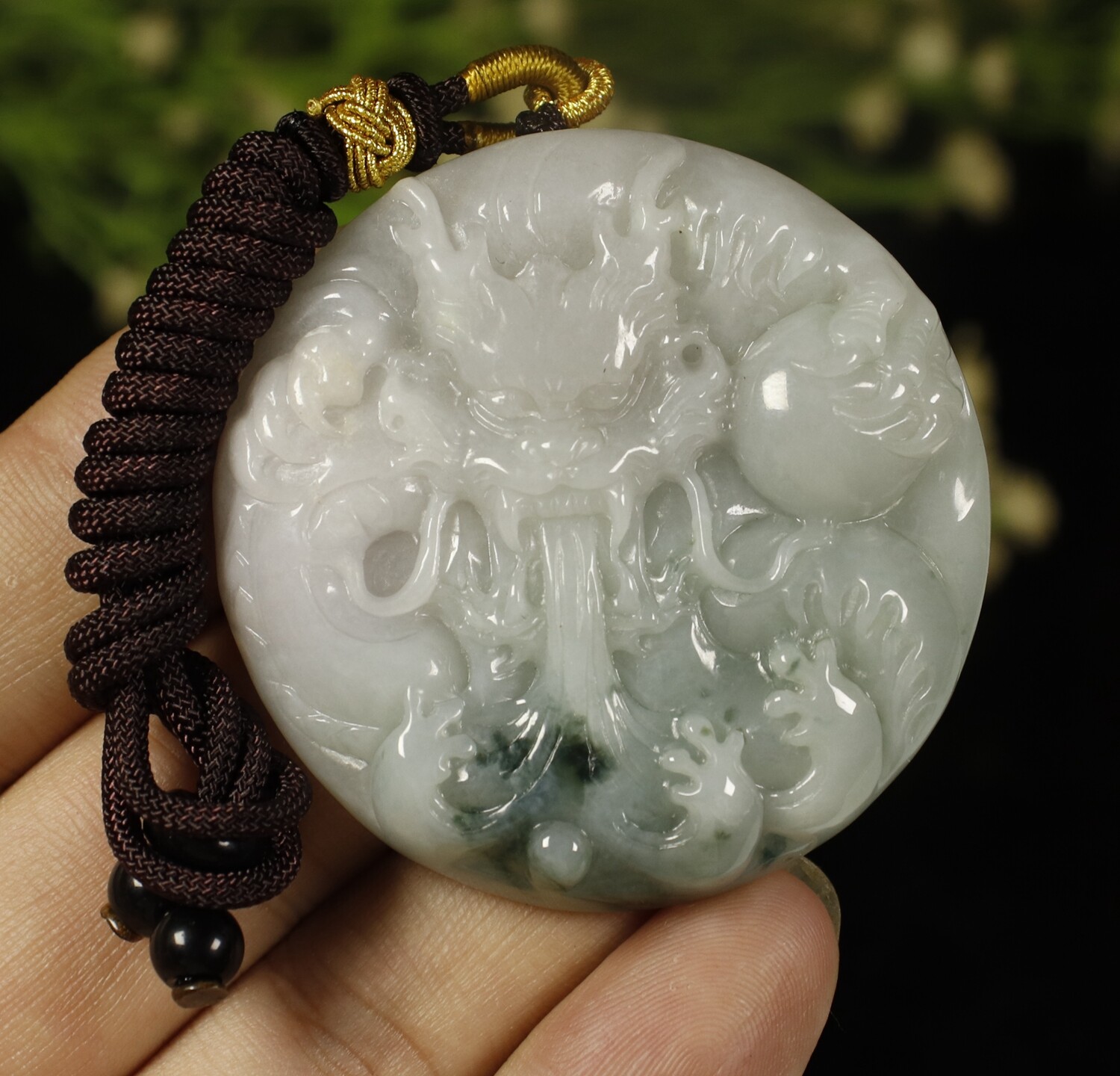 Certified Green 100 Natural A Jade Jadeite Fine Pendant Dragon 1728