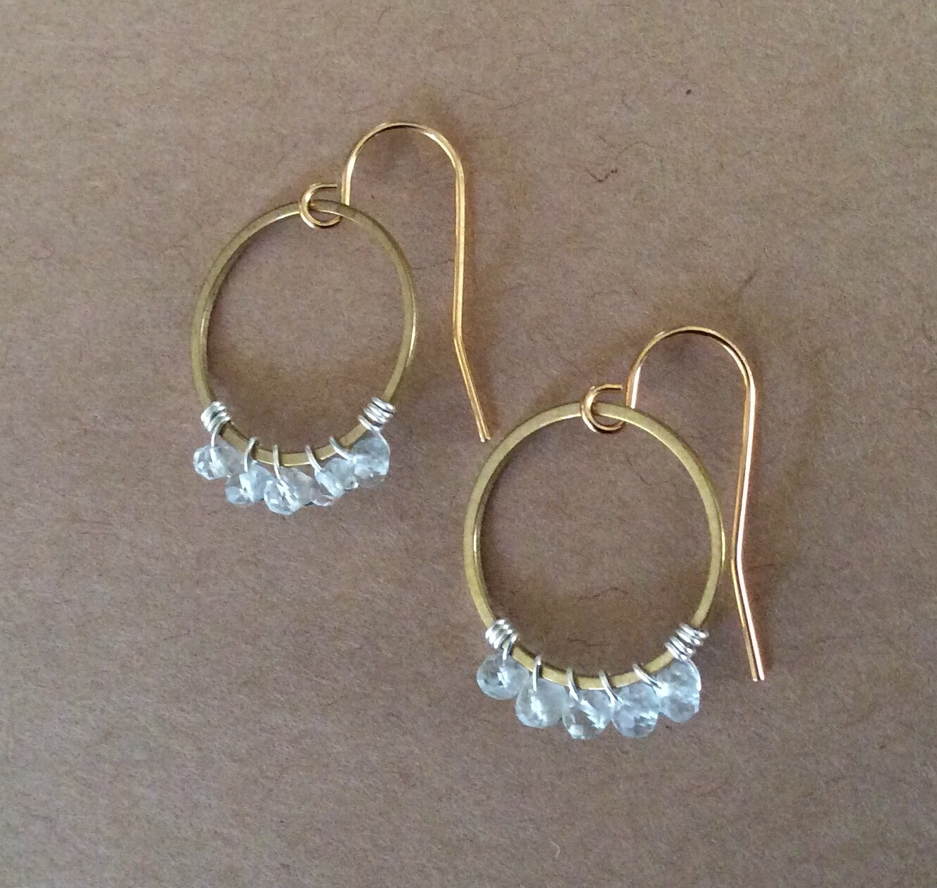 как выглядит NEW AQUAMARINE BEADED CIRCLE HANDMADE GOLD PLATED SUNDANCE CHARM EARRINGS фото