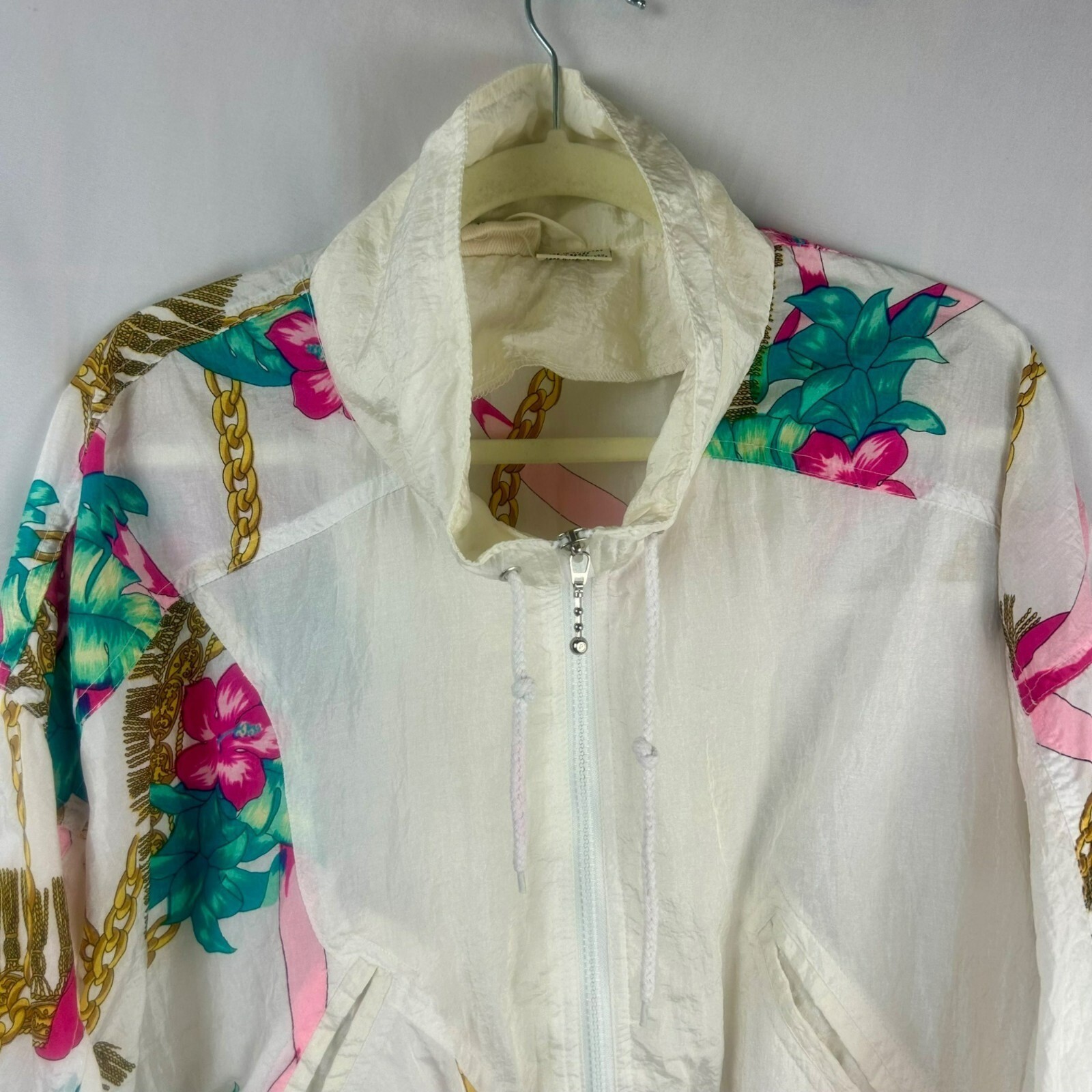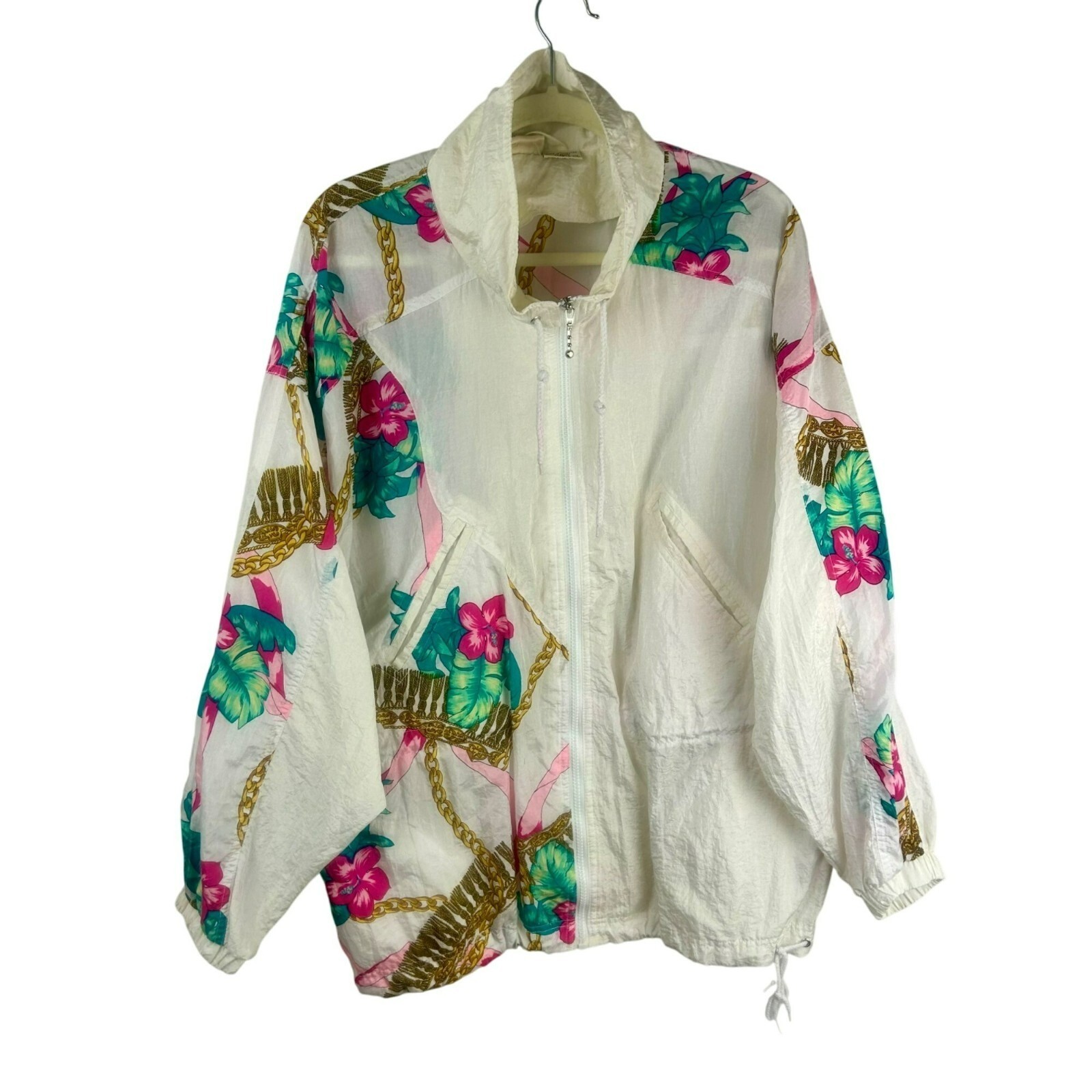 Vintage 80s 90s Athletic Works Windbreaker Jacket Women Large White Pink Floral