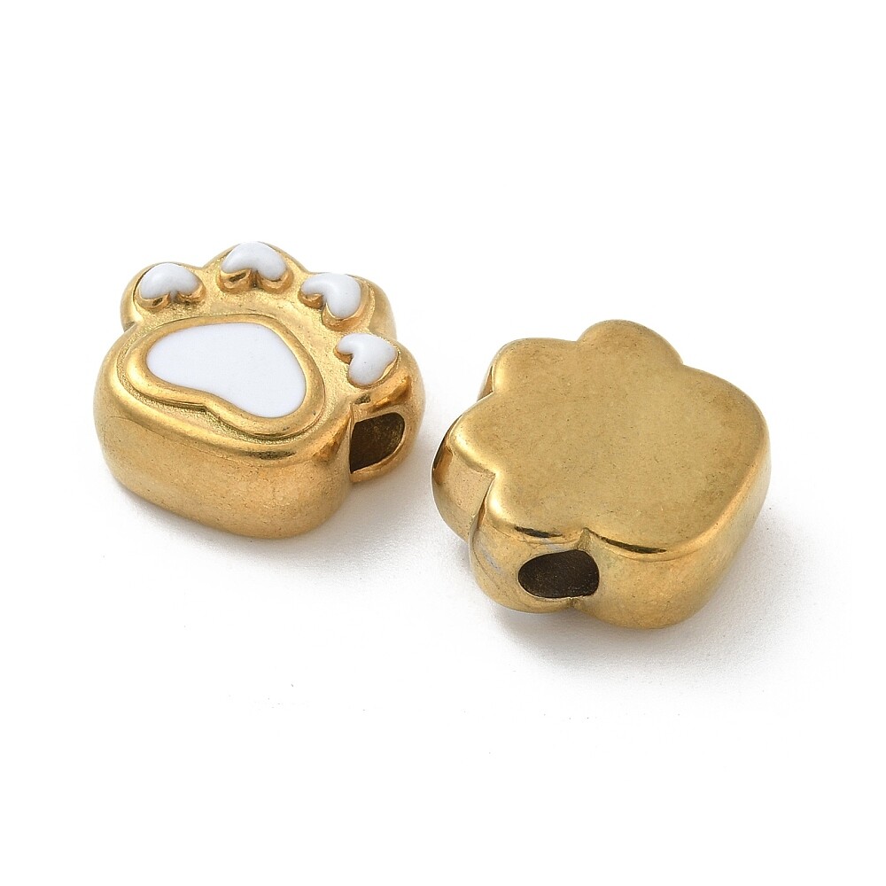 как выглядит 10pcs Stainless Steel Cat Paw Print Beads Gold Plated for Bracelets Necklace DIY фото
