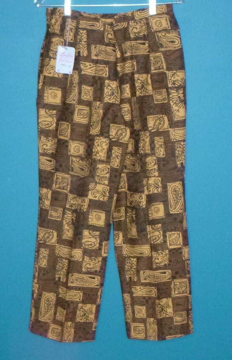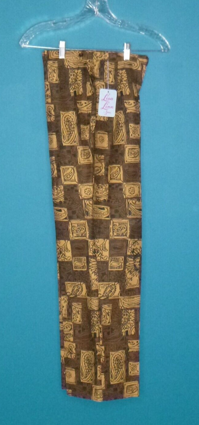 NOS Vtg 60s Lisa Linn GROOVY Print Cotton Pants Brown Sunflower Paisley W 28