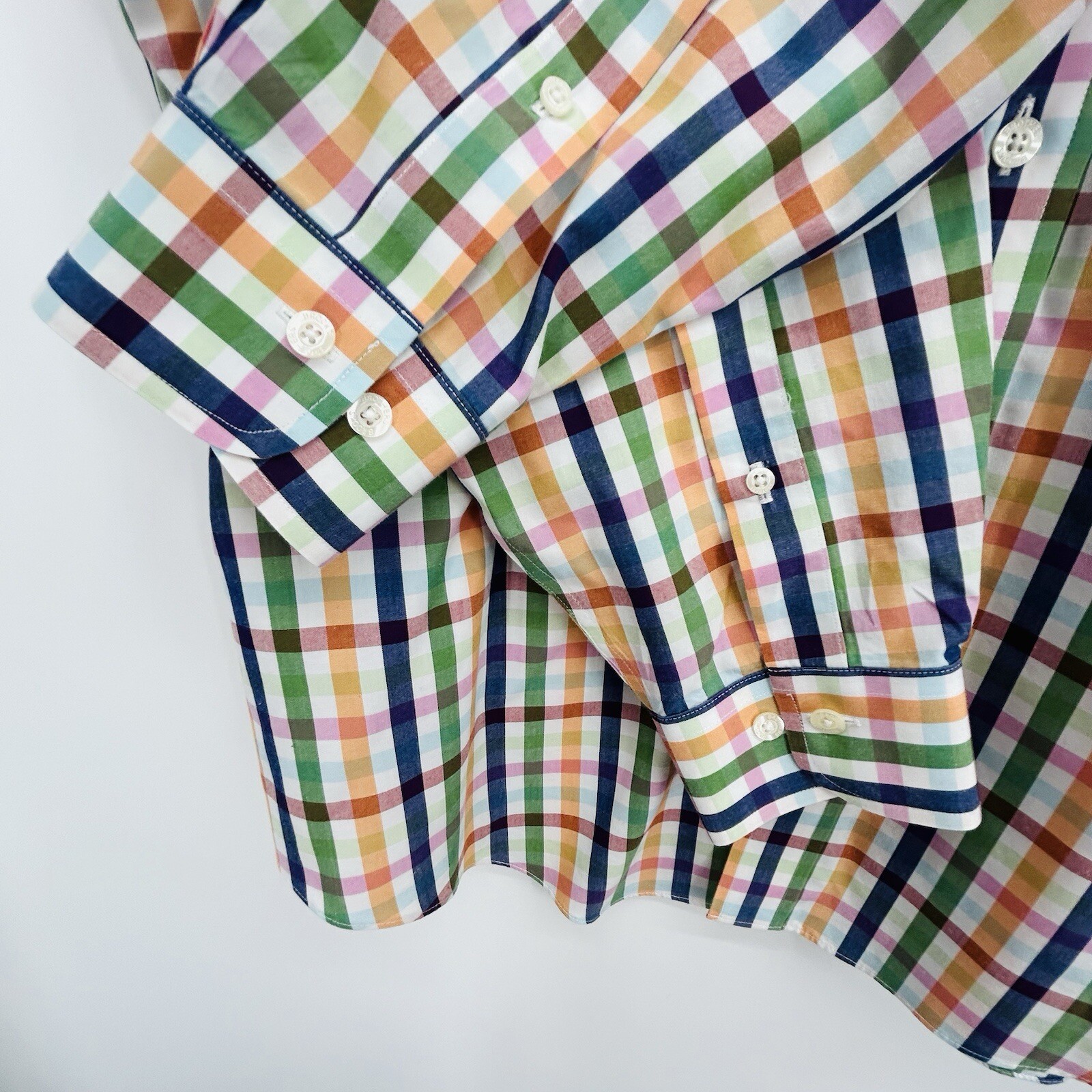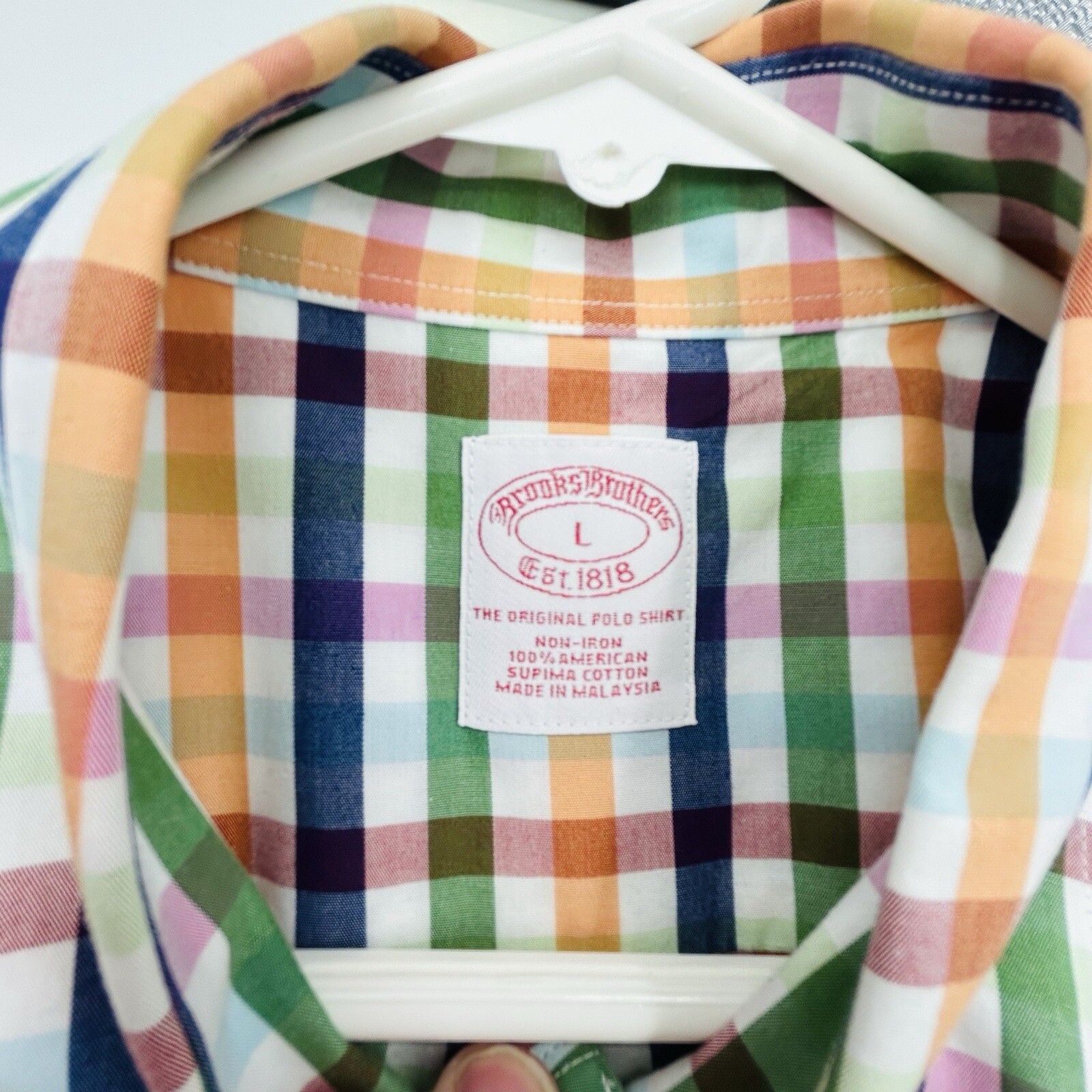 Brooks Brothers Mens Dress Shirt LARGE Plaid Button Up Cotton Original Polo