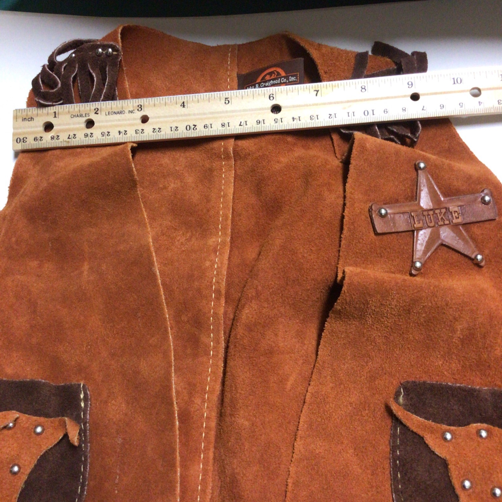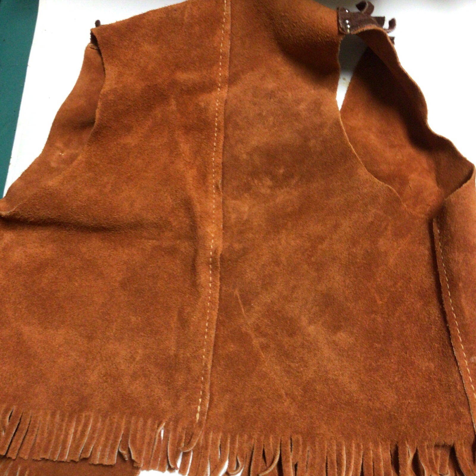 как выглядит JOHN R CRAIGHEAD CO. DENVER, CO VINT SGND WSTRN COWBOY/GIRL SUEDE FRINGED VEST фото