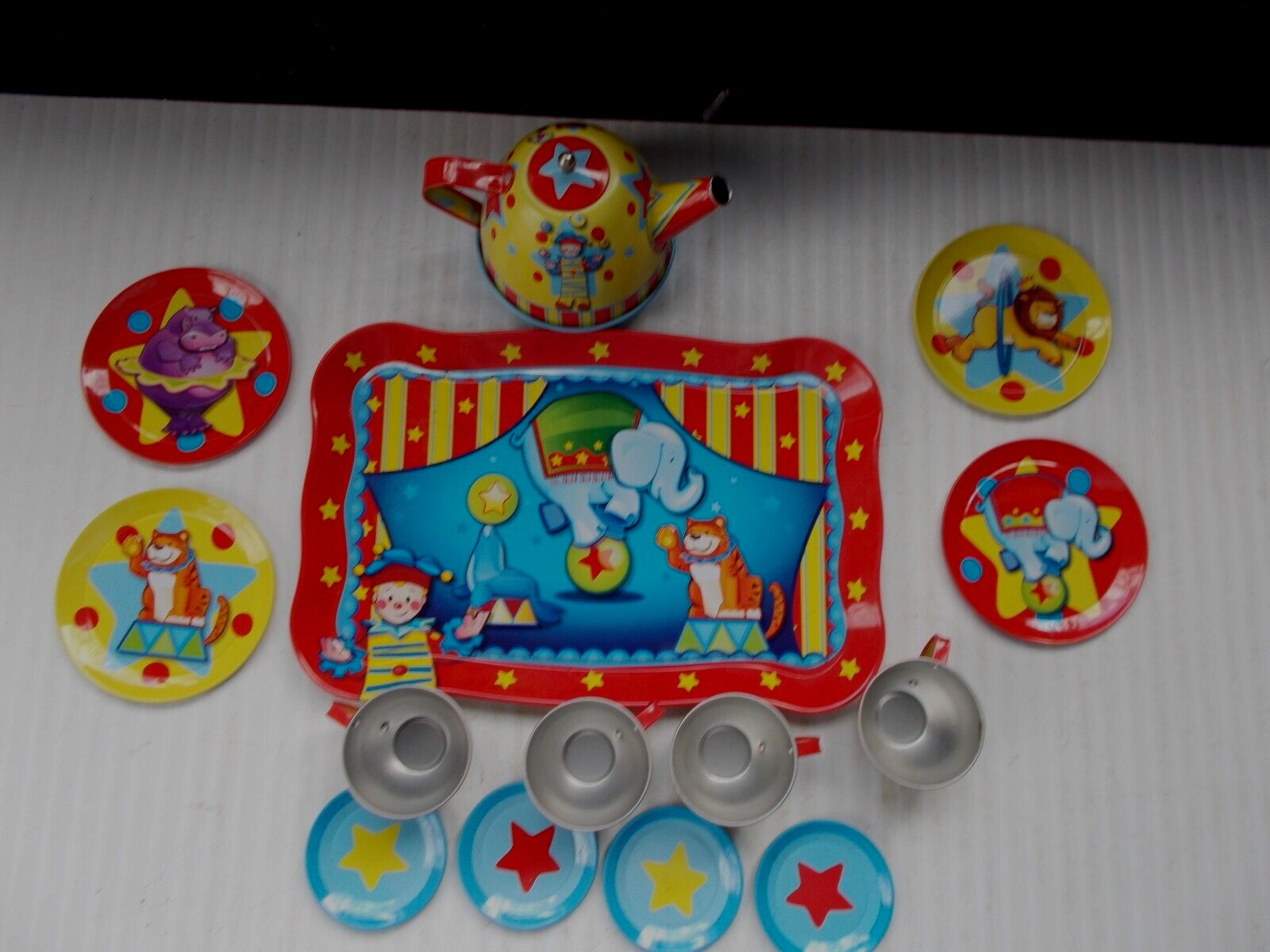 Schylling s Silly Circus Vintage Tin Tea Set - 15 pieces