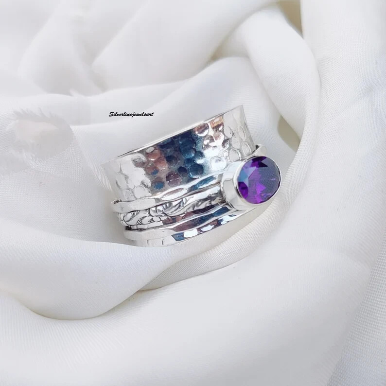 Amethyst Ring, 925 Silver Ring, Spinner Ring, Worry Ring, Women Ring, All Size