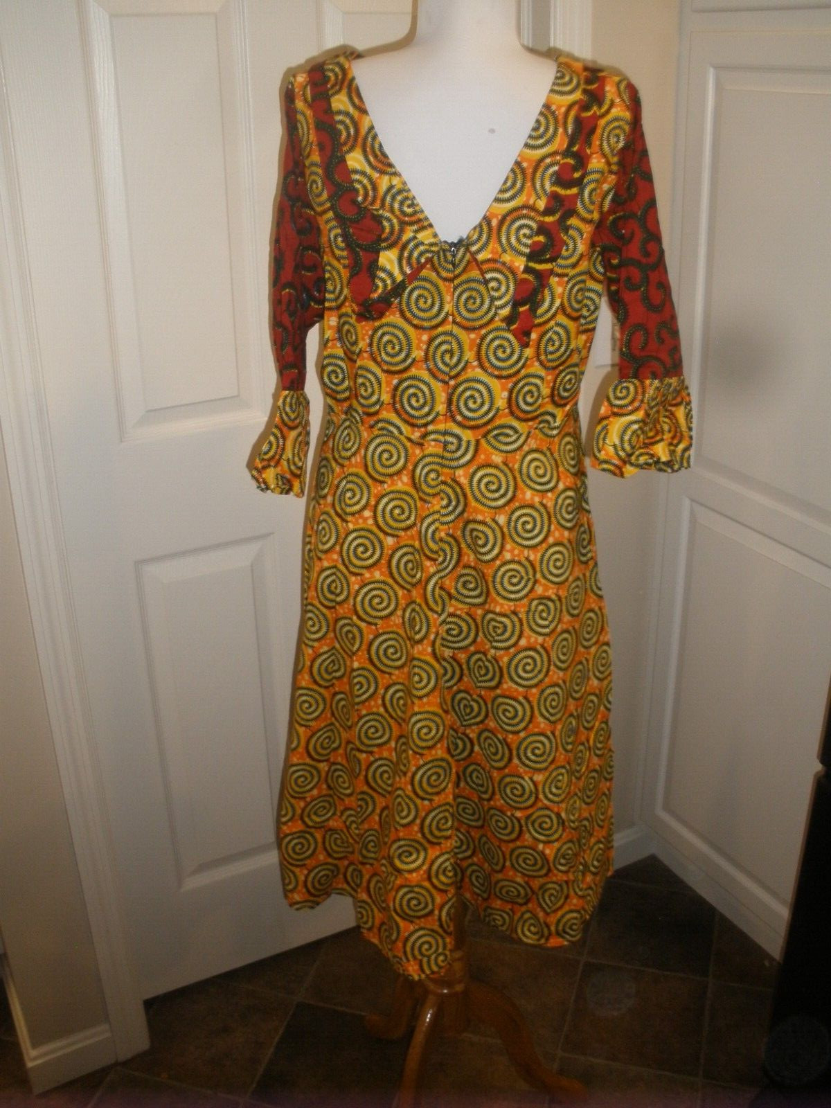 как выглядит Womens African Dress Ghana Mercis Creation Sz.16 multi-color T58 фото