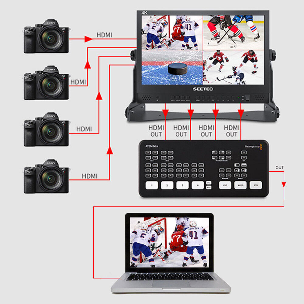 SEETEC ATEM156 15.6 Inch Live Streaming Broadcast Director Monitor 4 HDMI Input