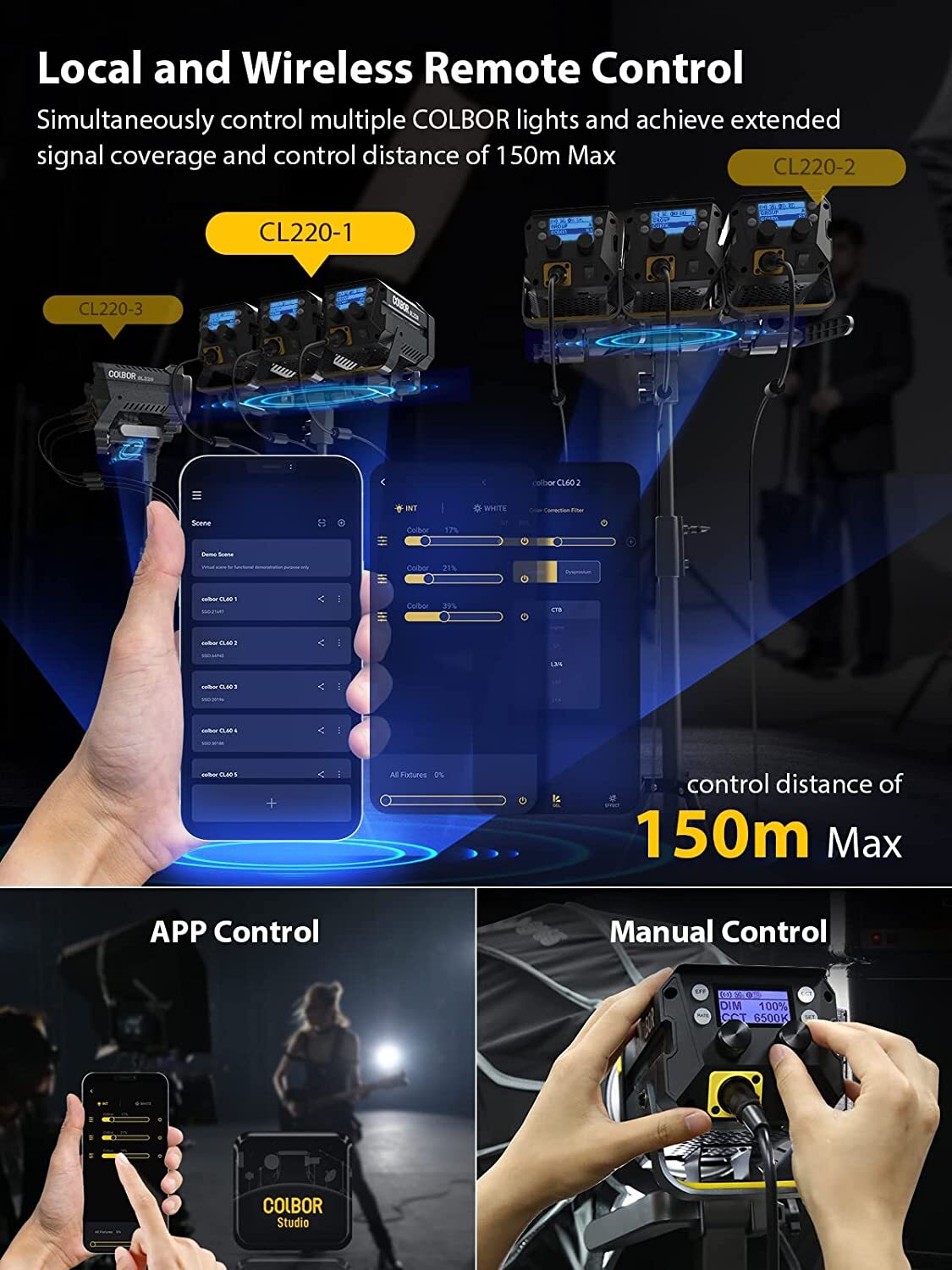 COLBOR CL220 Lite 220W Continuous Lighting 2700K-6500K CRI96 Led Video Light
