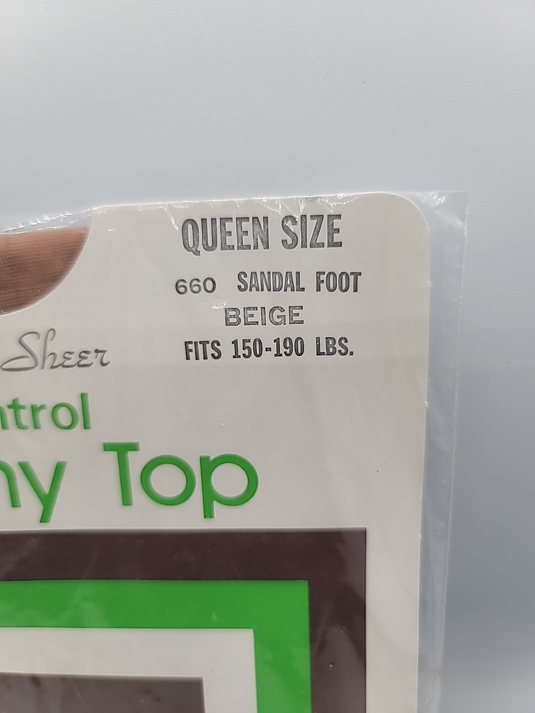 Vintage Control Tummy Top Pantyhose Beige Sandal Foot Queen Size Silk And Sheer