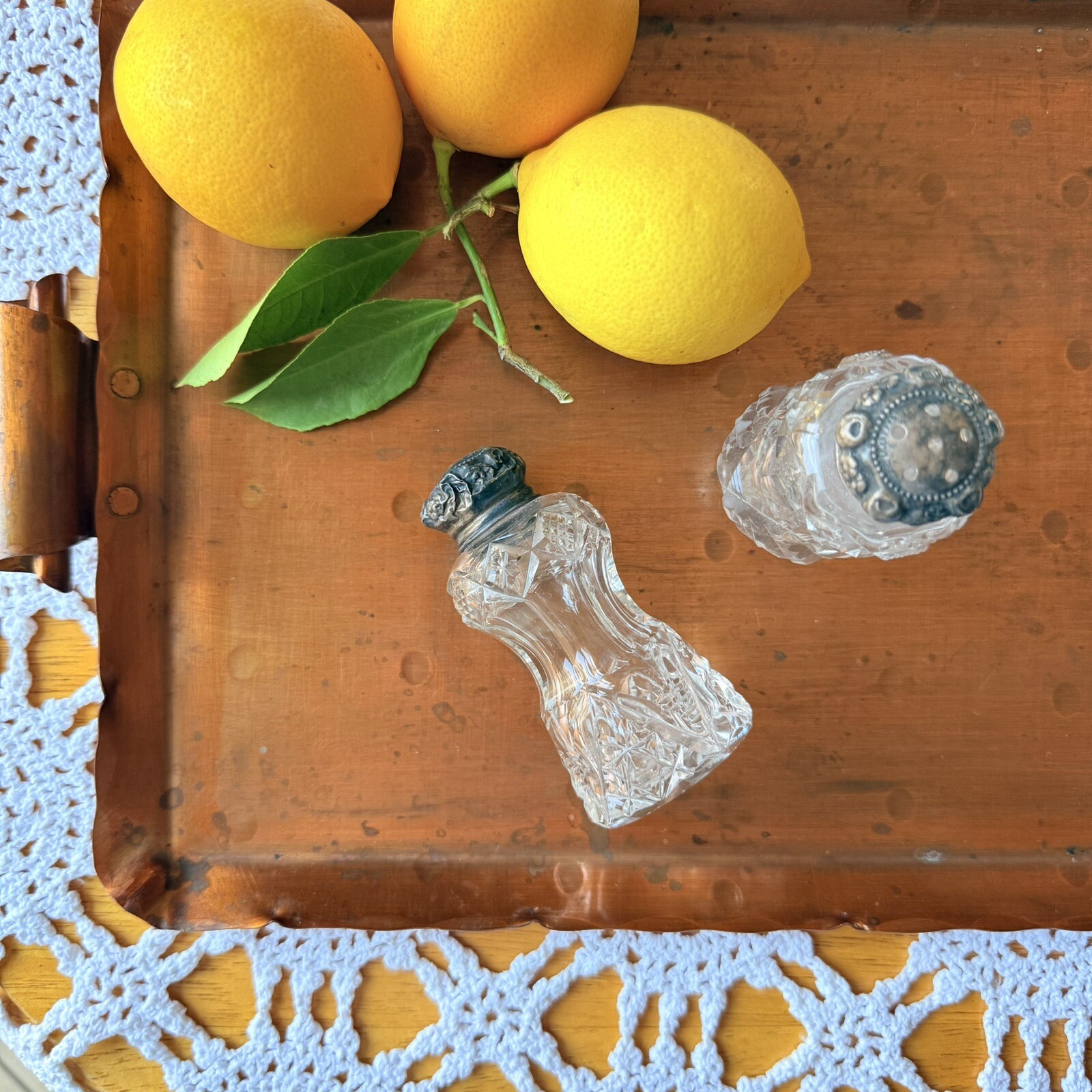 как выглядит Antique fancy cut glass salt and pepper shakers . фото