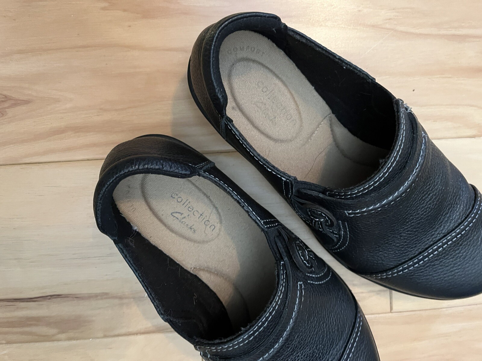 как выглядит CLARK S COLLECTION Sz 6 1/2 W Soft Cushion Slip on Cheyn Madi Black Leather фото