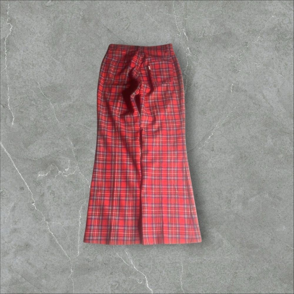как выглядит Vintage Levis For Gals Pants Womens 28x32 Red Plaid Capital E Flare Bell Bottom фото