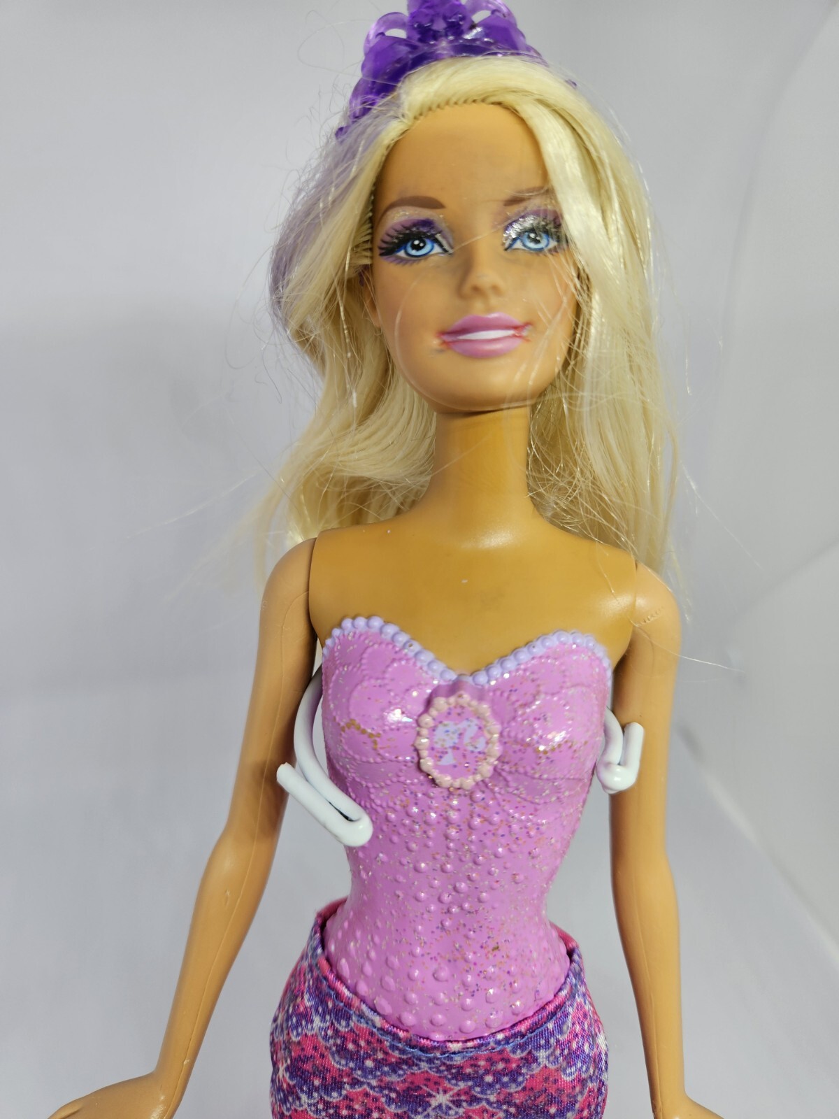 как выглядит Barbie Color Splash Mermaid Doll 2011 Blonde purple Streaks Removable fin фото