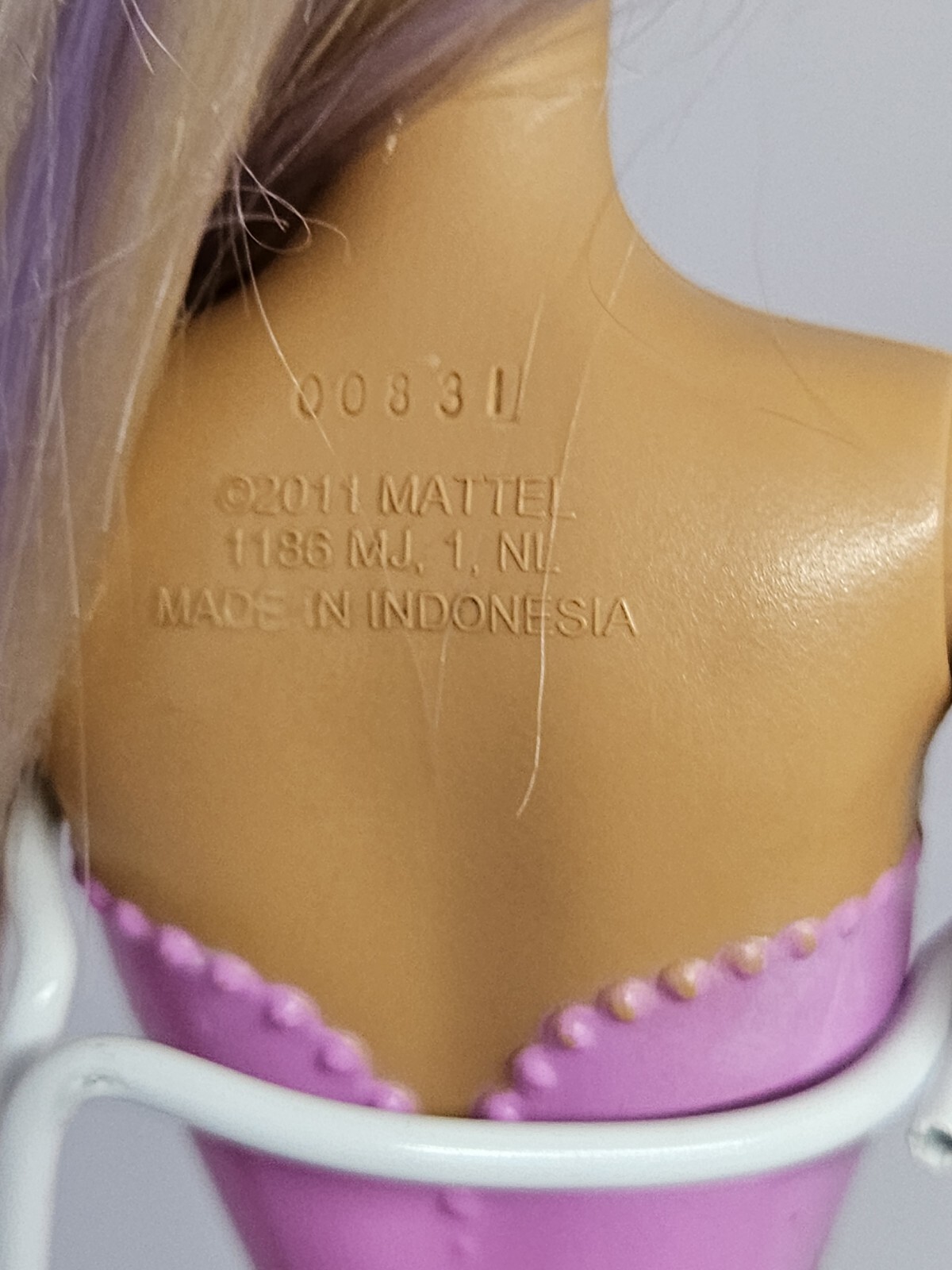 Barbie Color Splash Mermaid Doll 2011 Blonde purple Streaks Removable fin