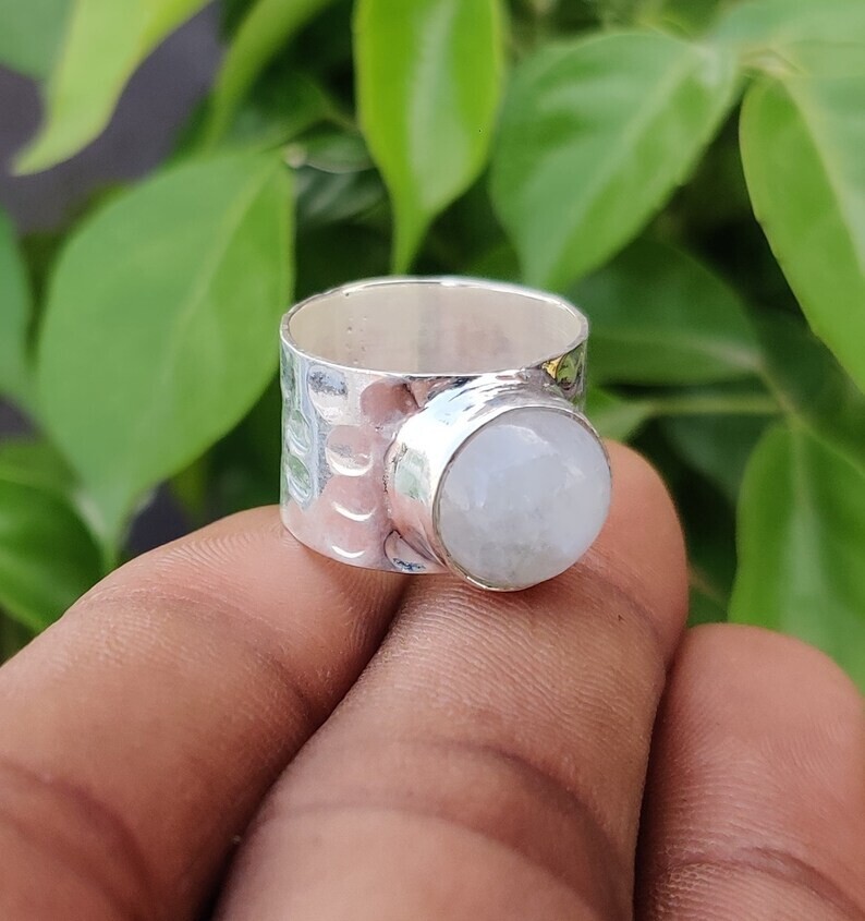 как выглядит Moonstone Ring 925 Sterling Silver Ring Round Gemstone Ring Handmade All Size фото