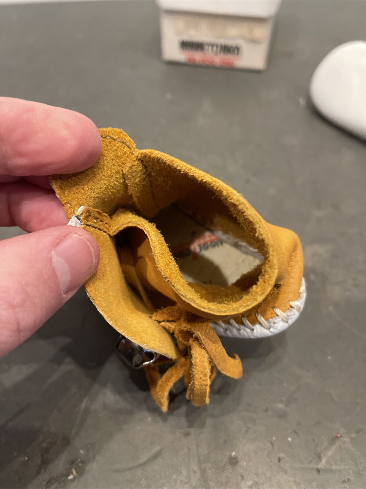 Vintage Minnetonka Pa Poo Shu w/ Bells Deerskin Baby Moccasins Size 4