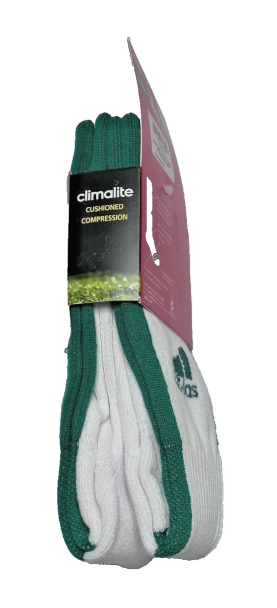 Adidas, Climalite, Cushioned White w/Green Stirrup OTC Socks, 2Pk. Size 13C-4Y