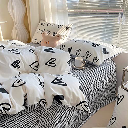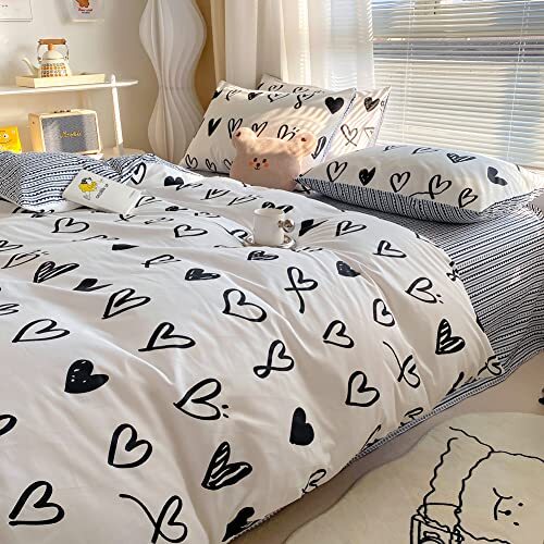 Hearts Kids Duvet Cover Set Queen 100 Full/Queen 90'' x 90'' Simple Love