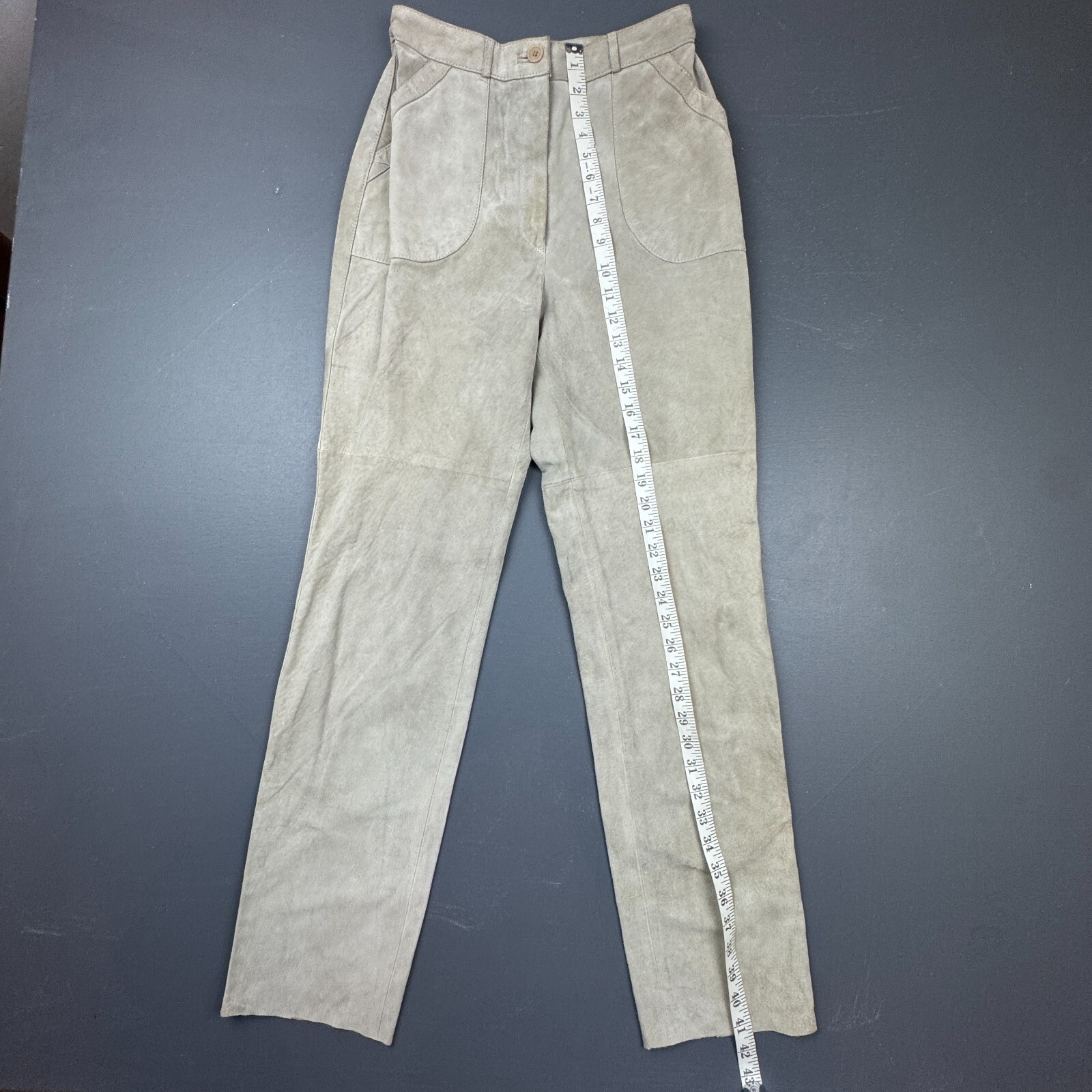 как выглядит Pia Rucci Suede Pants Womens Size 10 Beige High Waisted Leather Lined Vintage фото
