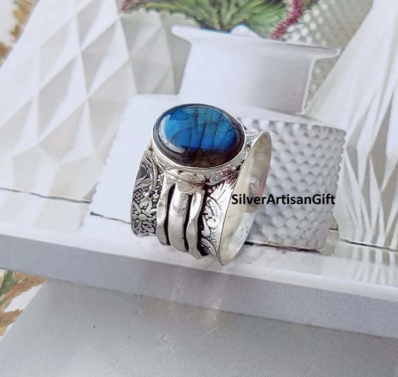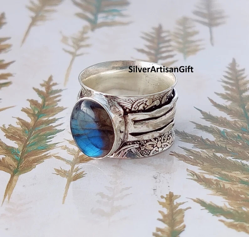 как выглядит Labradorite Ring, 925 Sterling Silver Ring, Handmade Ring, Band Ring, W,All Size фото