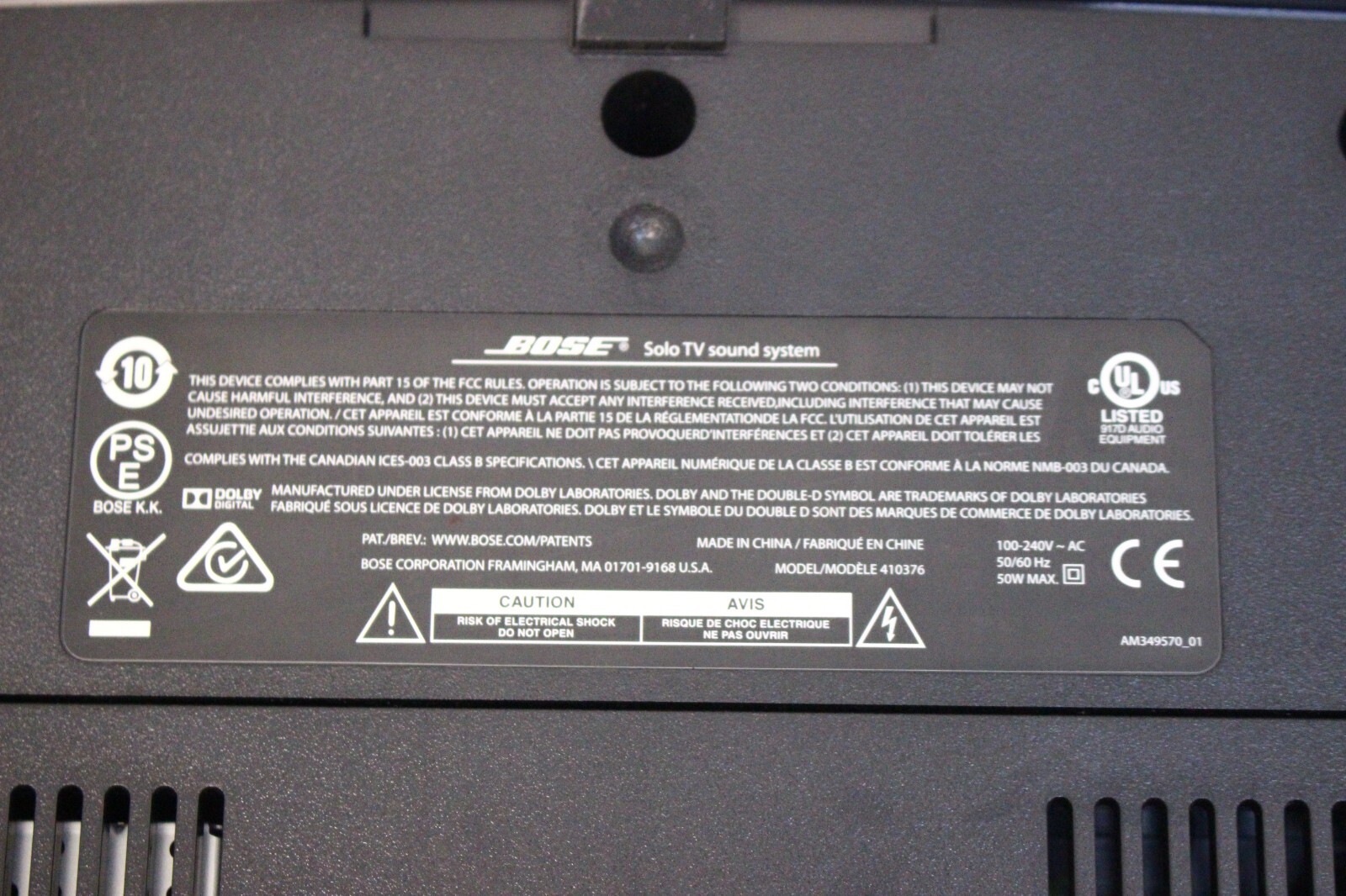 Bose Solo TV Sound System Model 410376 Black No Remote- Works
