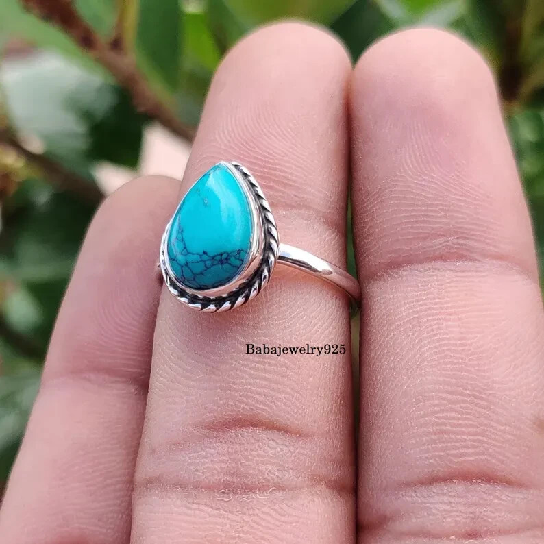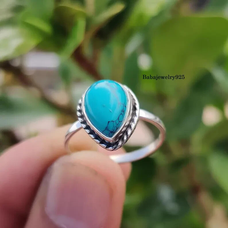 как выглядит Beautiful Turquoise Ring, Handmade Ring, 925 Sterling Silver Ring, Boho All size фото