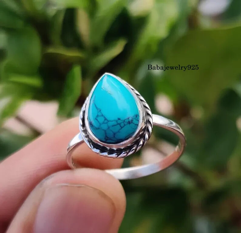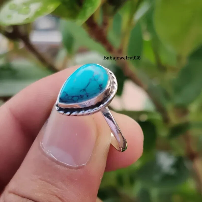 Beautiful Turquoise Ring, Handmade Ring, 925 Sterling Silver Ring, Boho All size